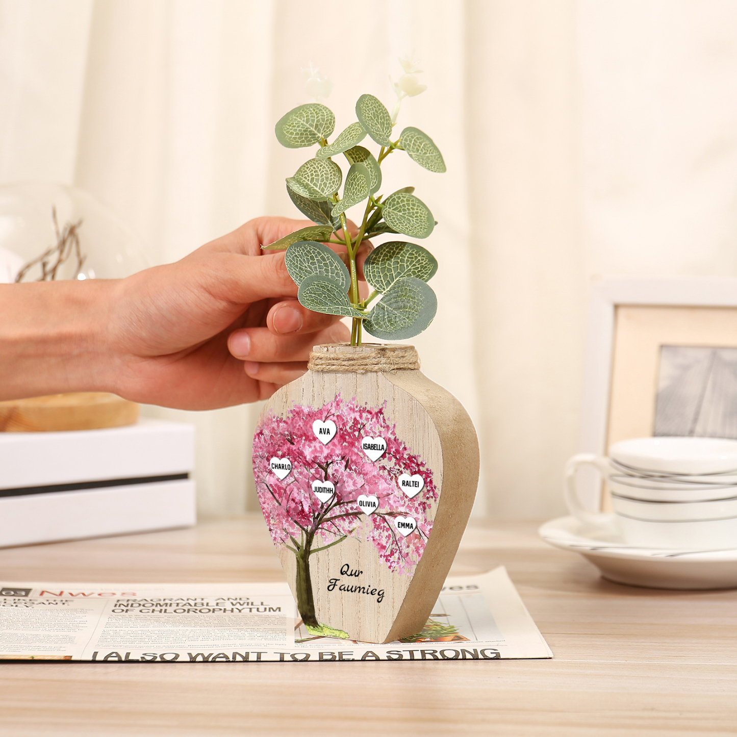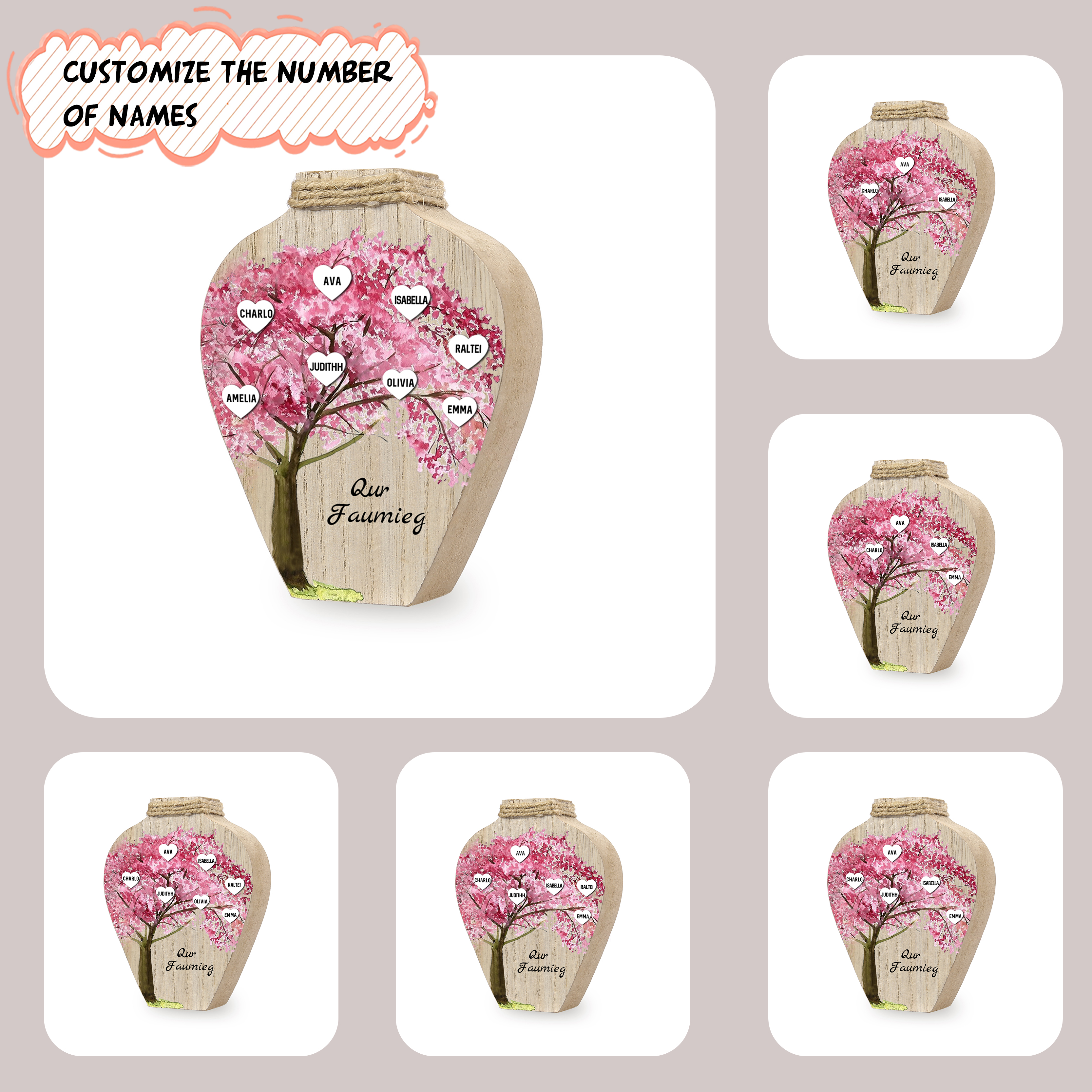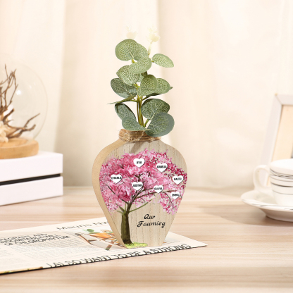 7 Names - Personalized Sakura Style Custom Text and Name Home Wooden Decorative Vase for Family