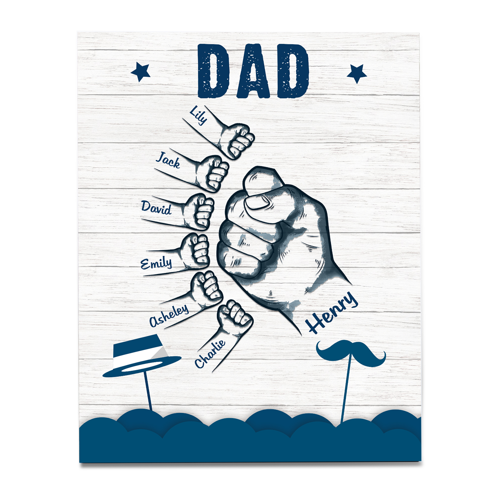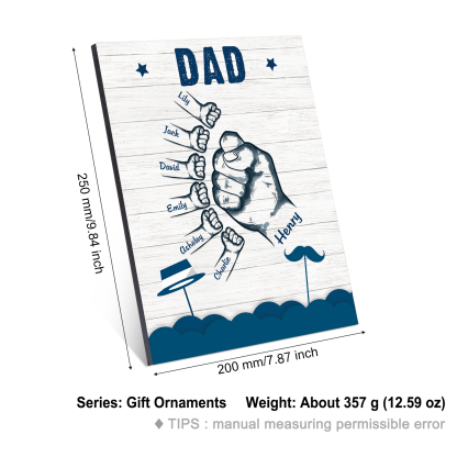7 Names - Personalized Wooden Ornament Fist Bump Style Engraved Name and Text Ornament for Dad