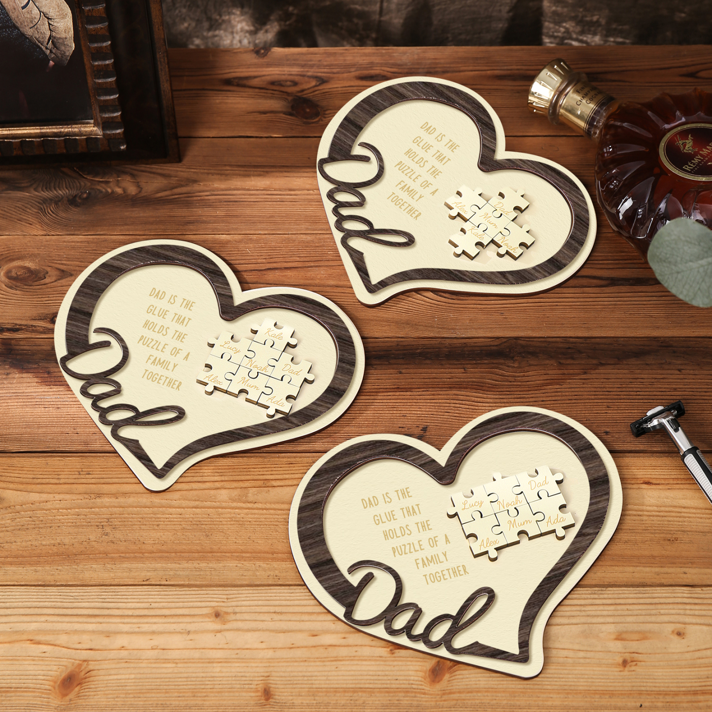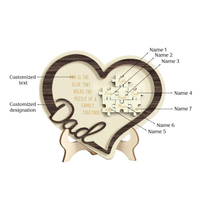 7 Names - Personalized Wooden Ornaments Heart and Puzzle Elements Engraved Text Style Ornaments Home Decor for Dad