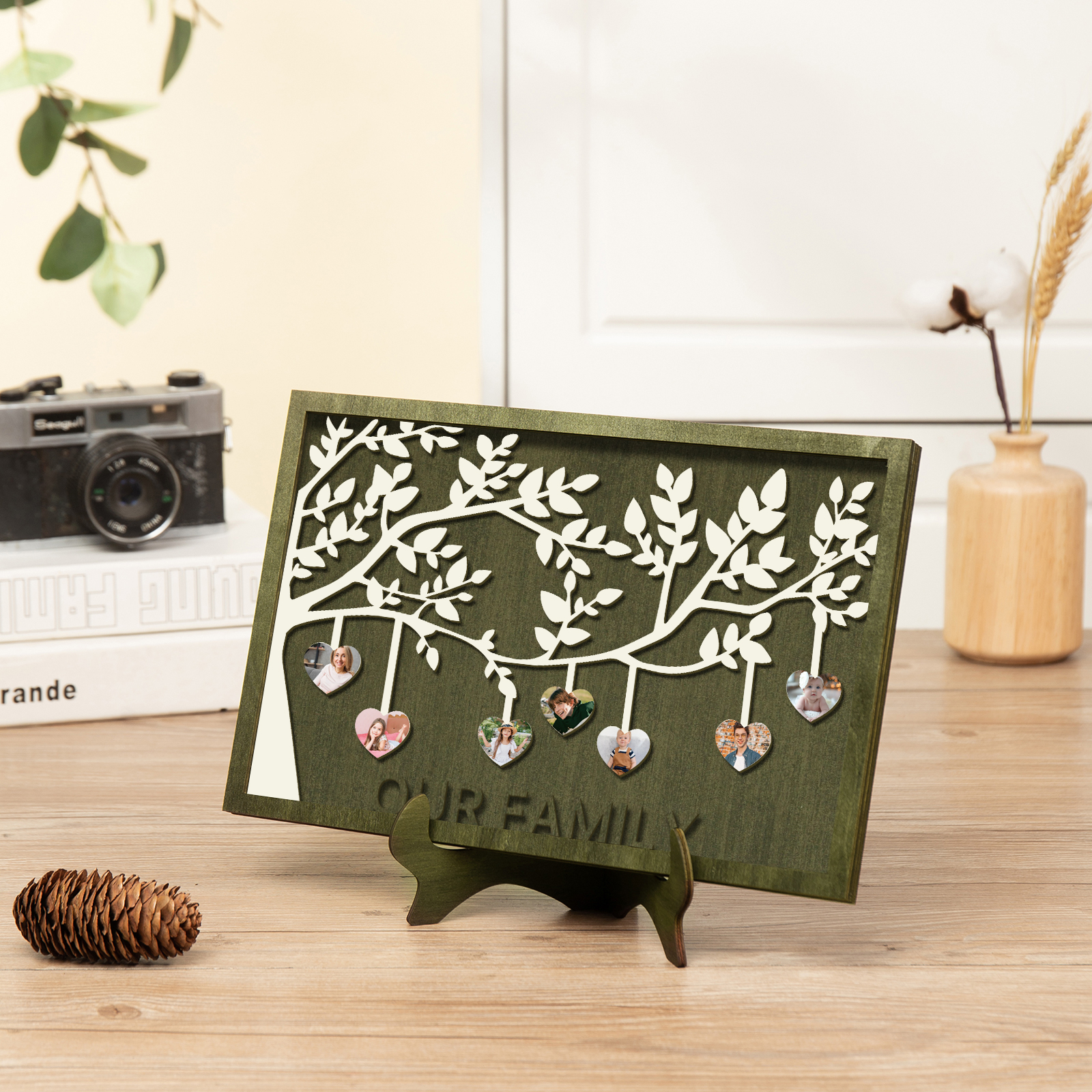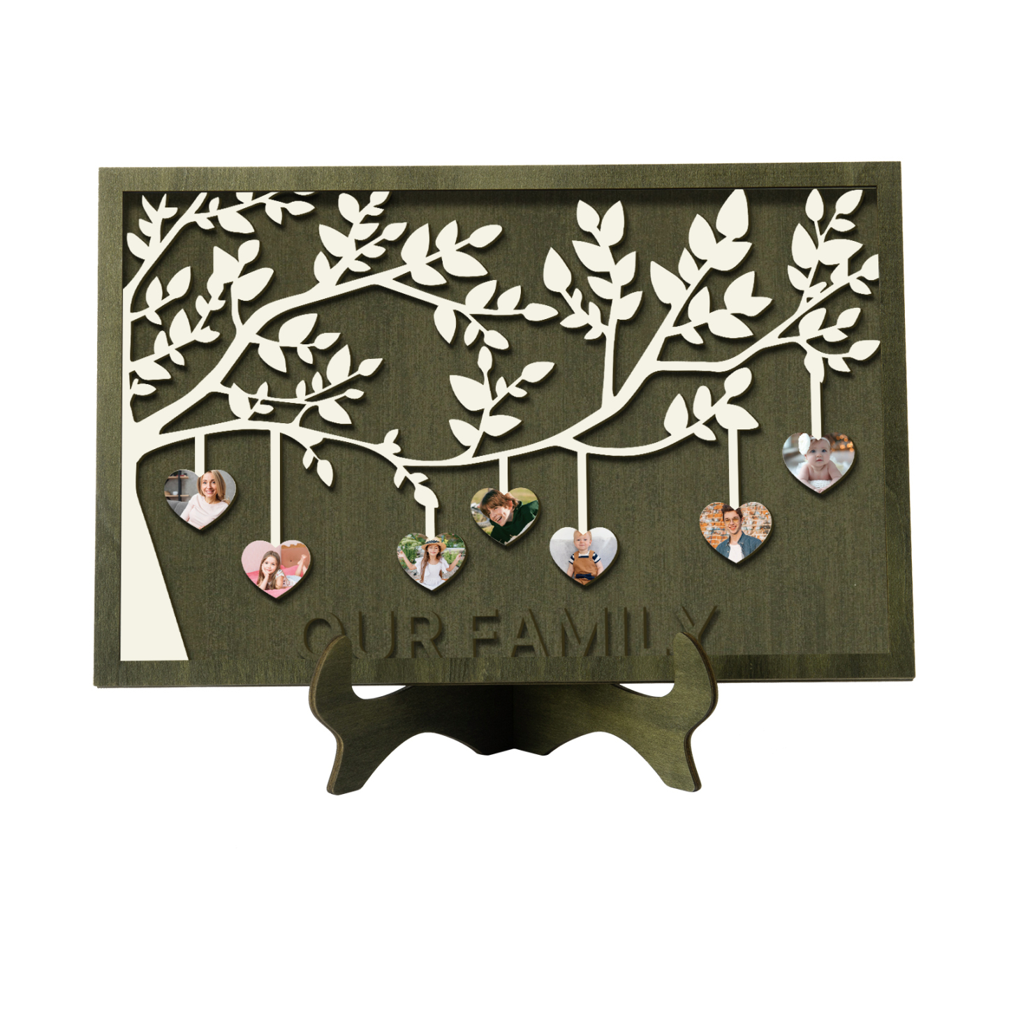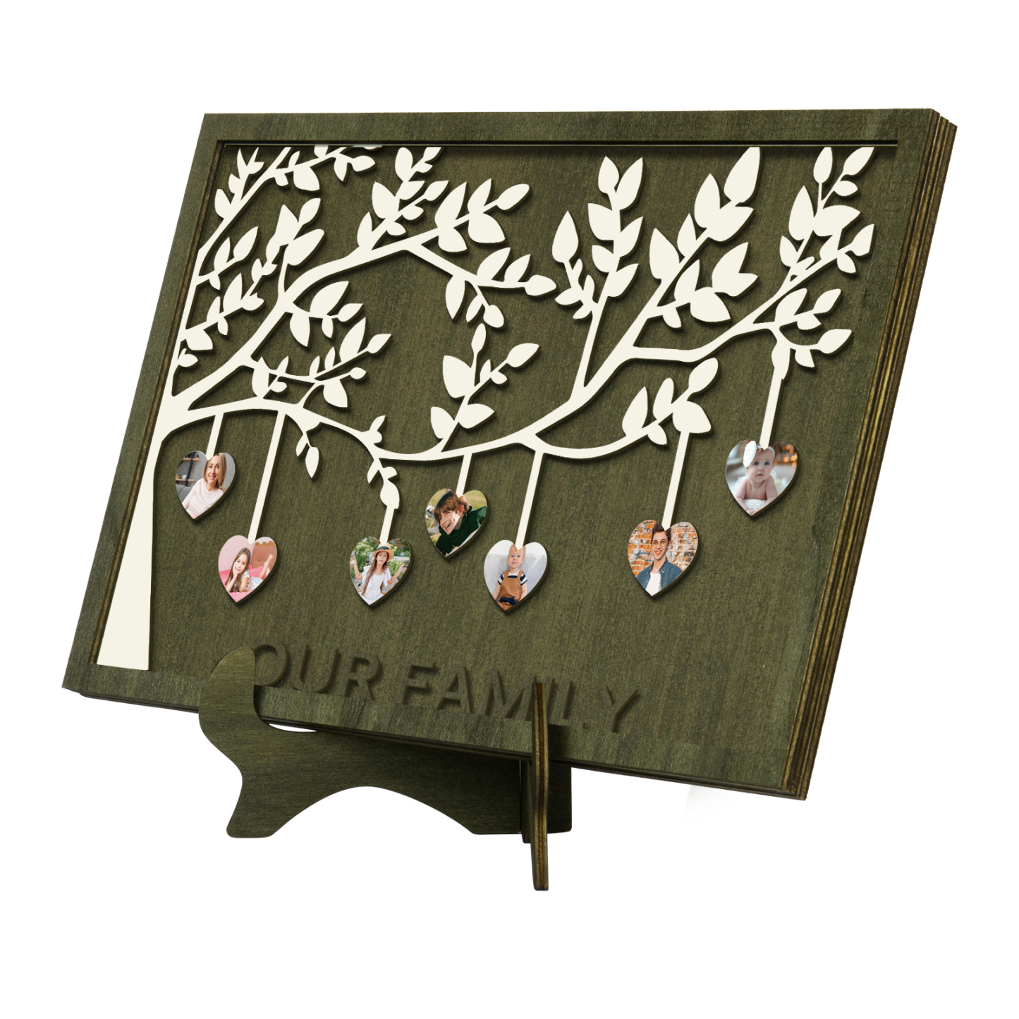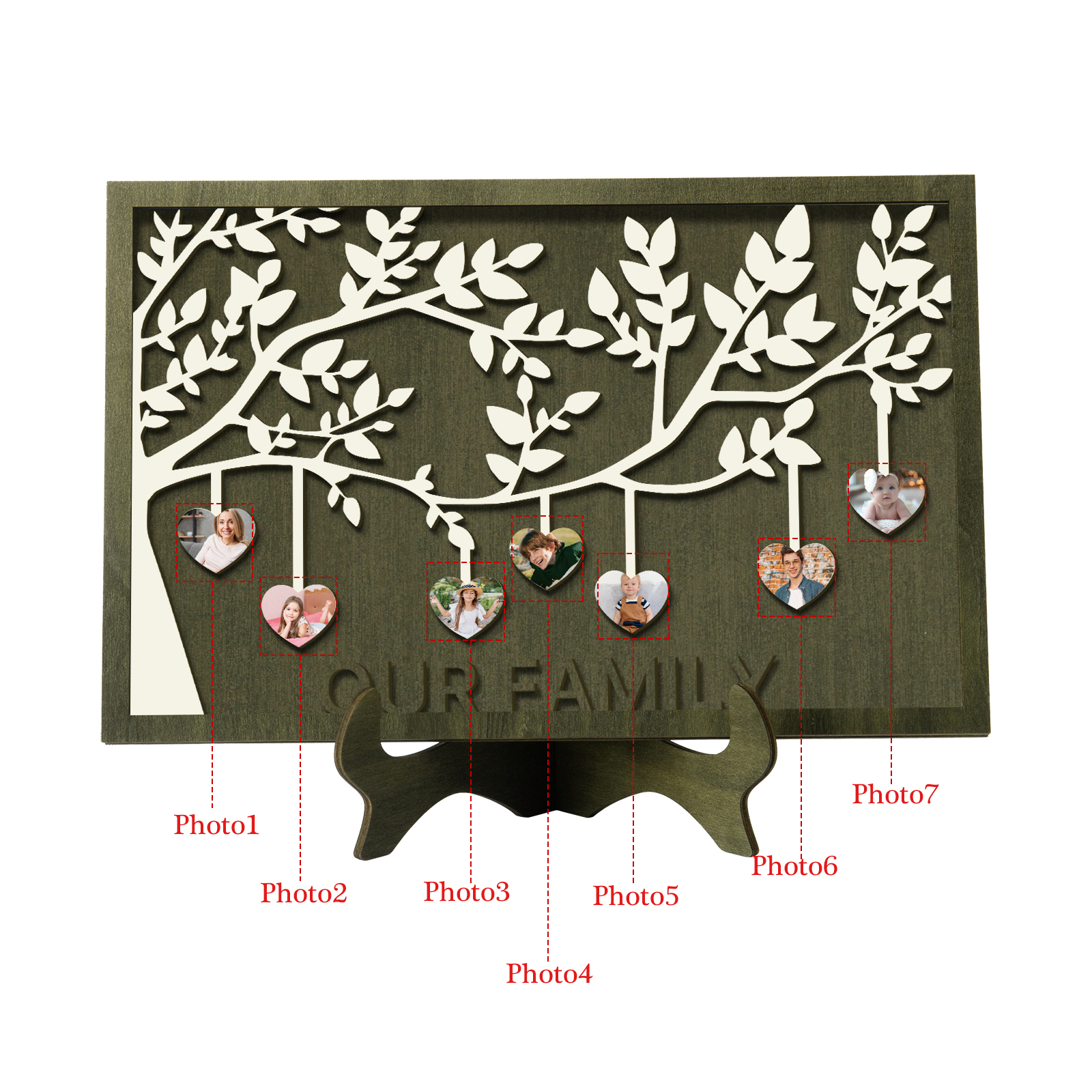 7 Photos-Personalized Family Tree Decoration Wooden Ornaments Concave And Convex Frame Custom Photos For Our Family