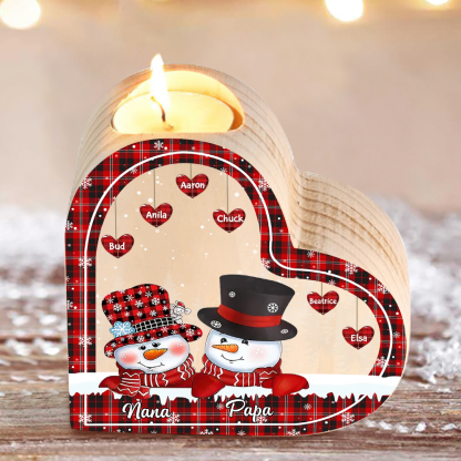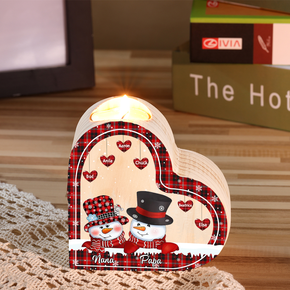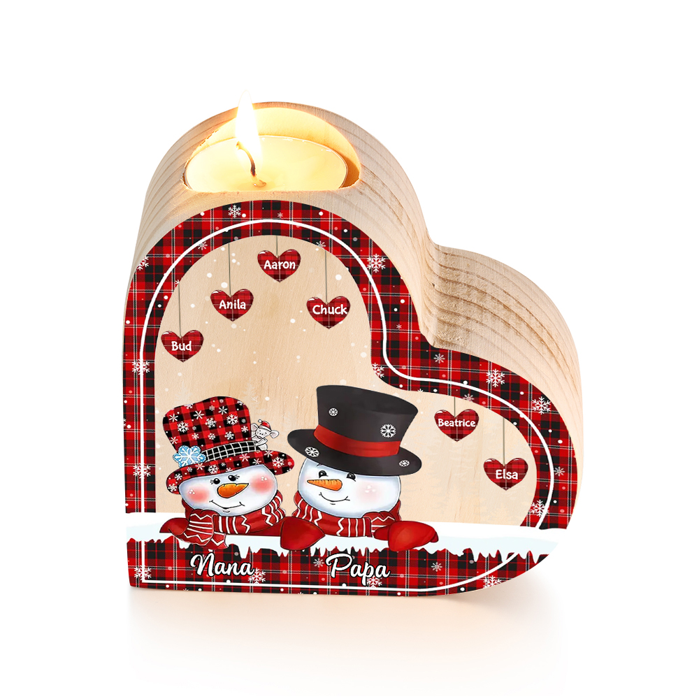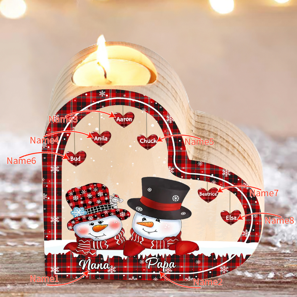 8 Names-Custom Christmas Wooden Candlestick-Personalized Names Snowman Heart Candle Holder Christmas Gift for Family