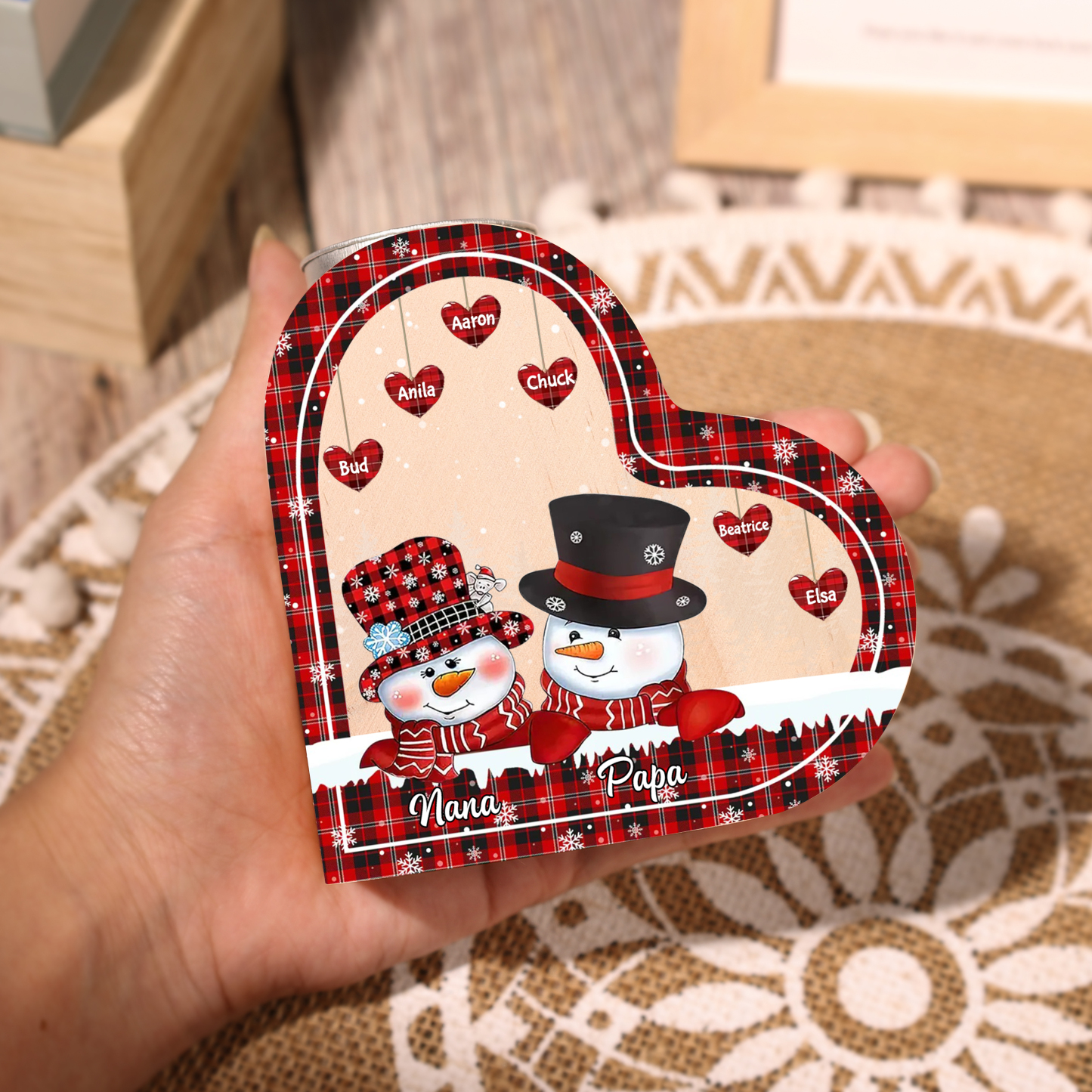🎄 This custom heart-shaped Chrismas candle holder is the perfect gift for your family! With its unique heart-shaped design and the option to customize 3-8 names, it adds warmth and a special touch to your household. On Chrismas night, light the candles and share the love and joy of your family.