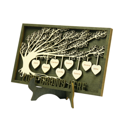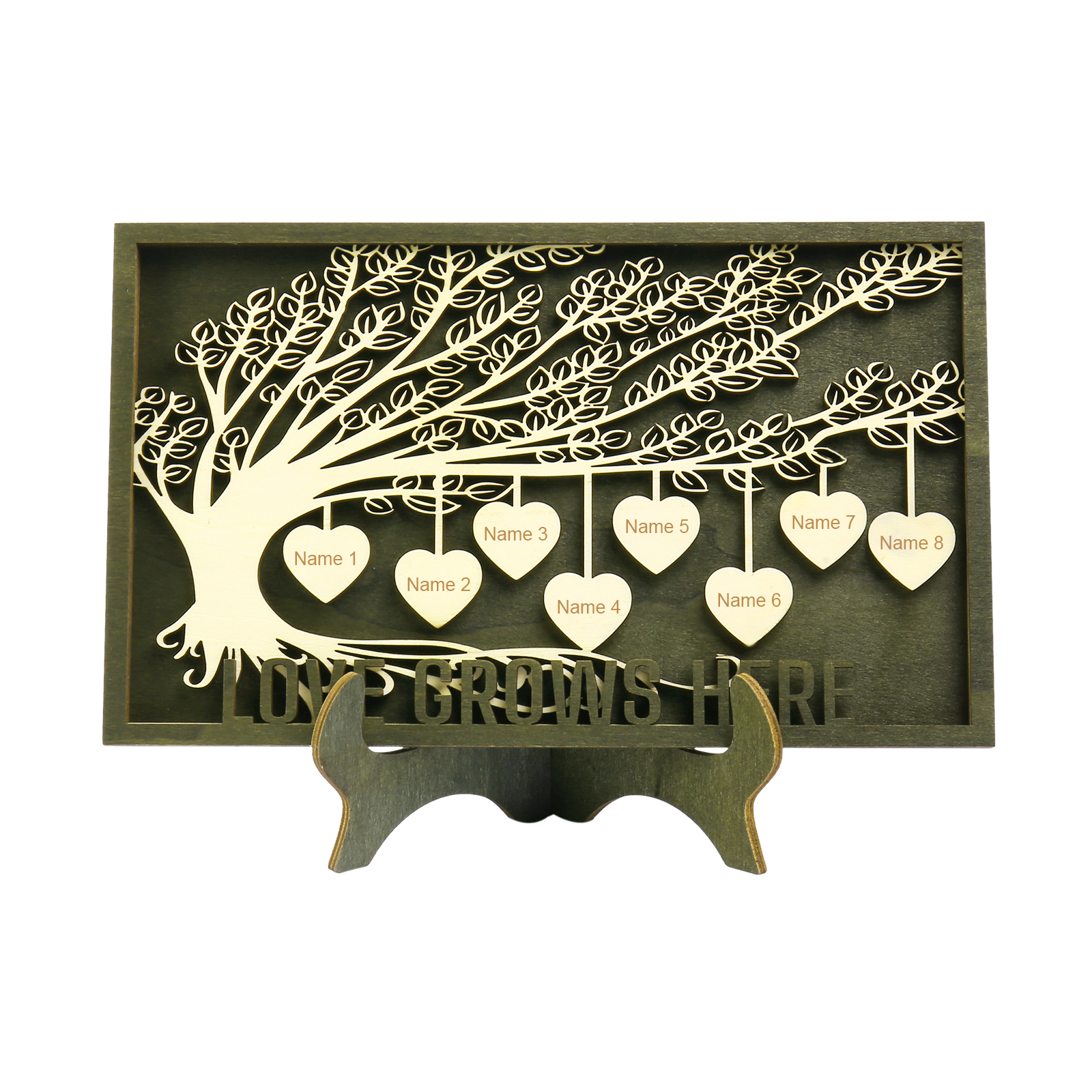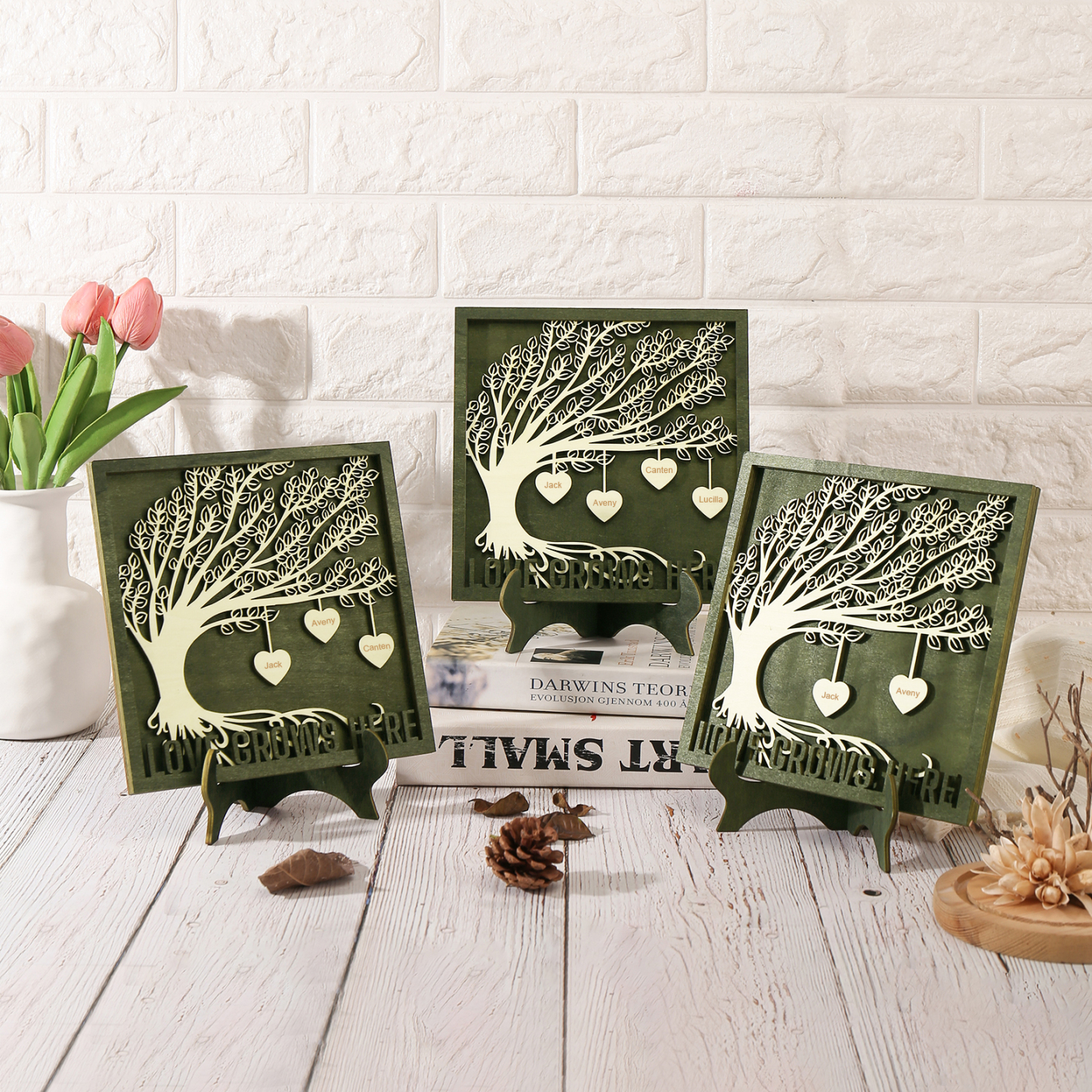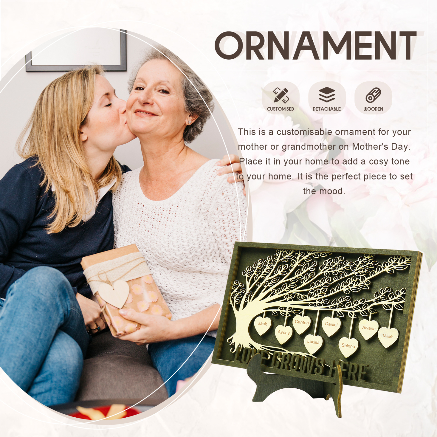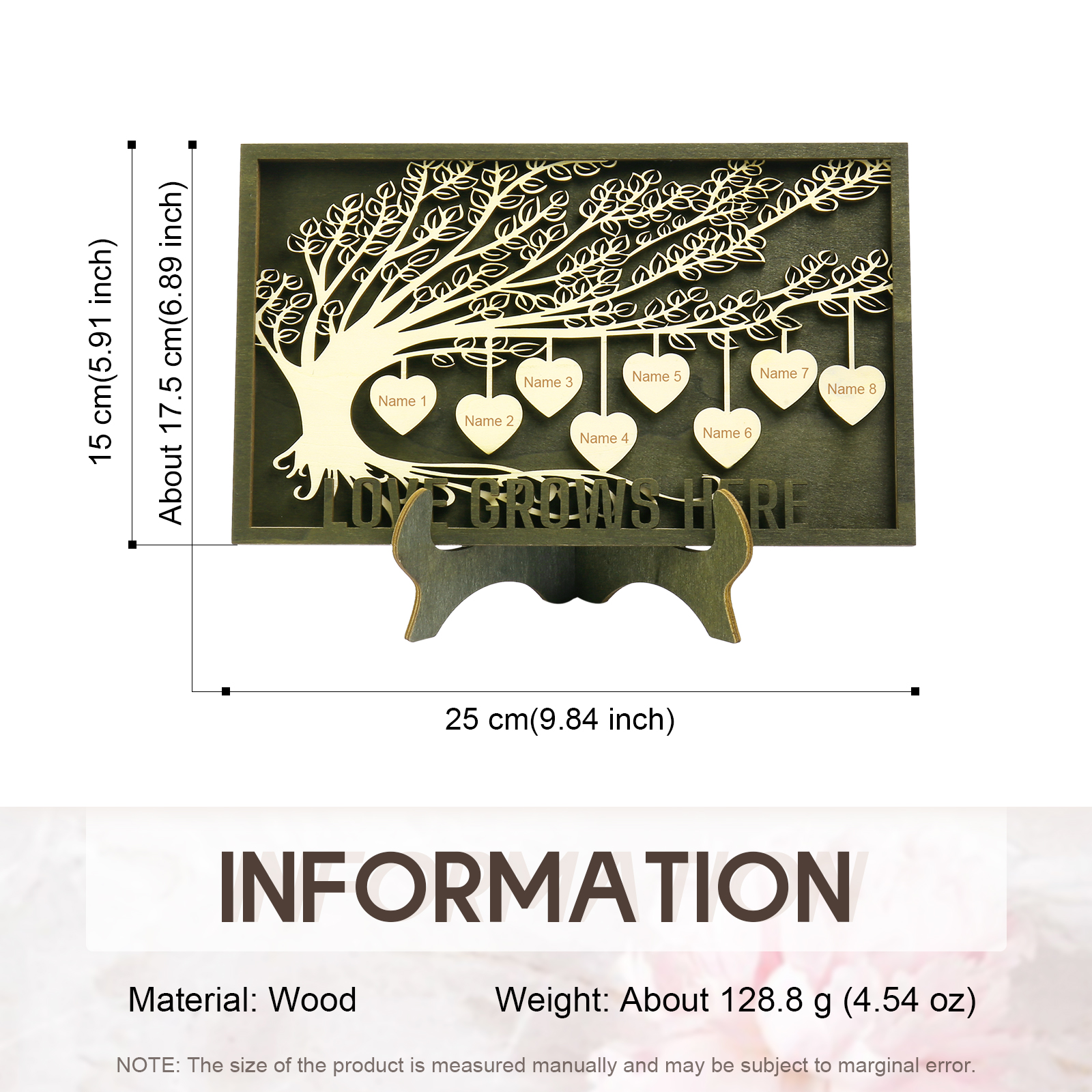 8 Names - Customized Tree Type Wooden Ornaments Decorations Text Love Grows Here
