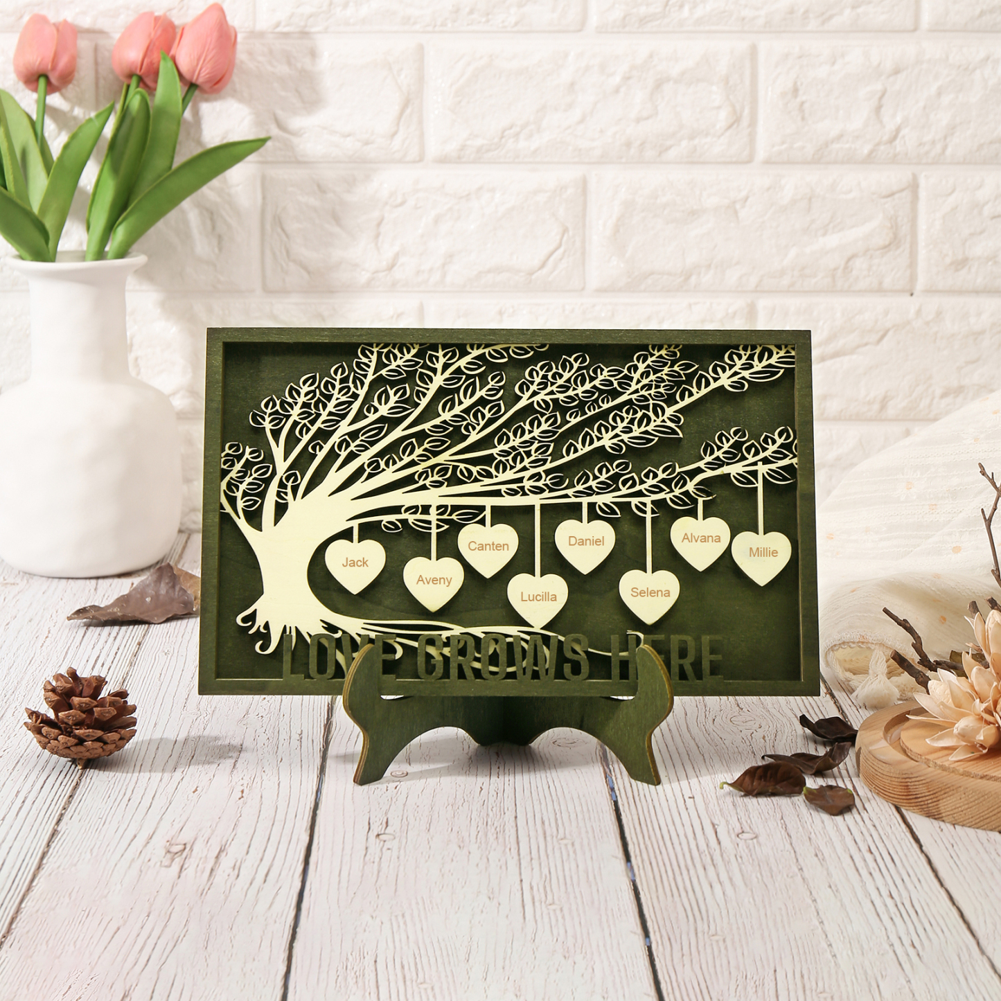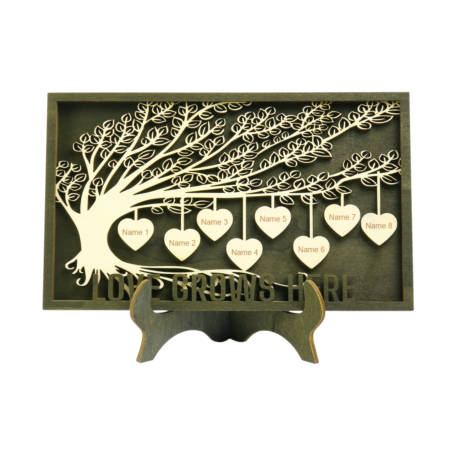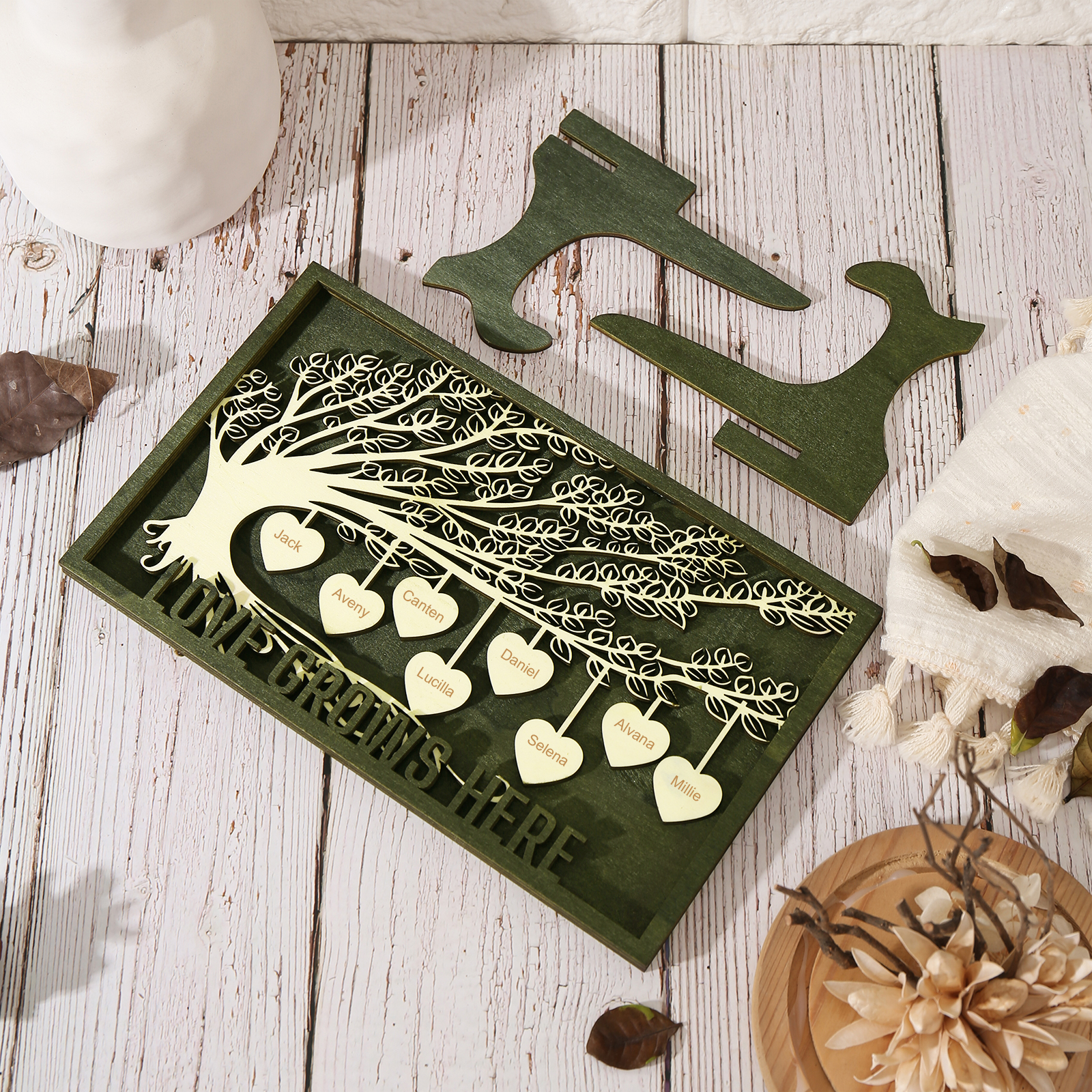 8 Names - Customized Framily Tree Type Wooden Ornaments Decorations Text Love Grows Here