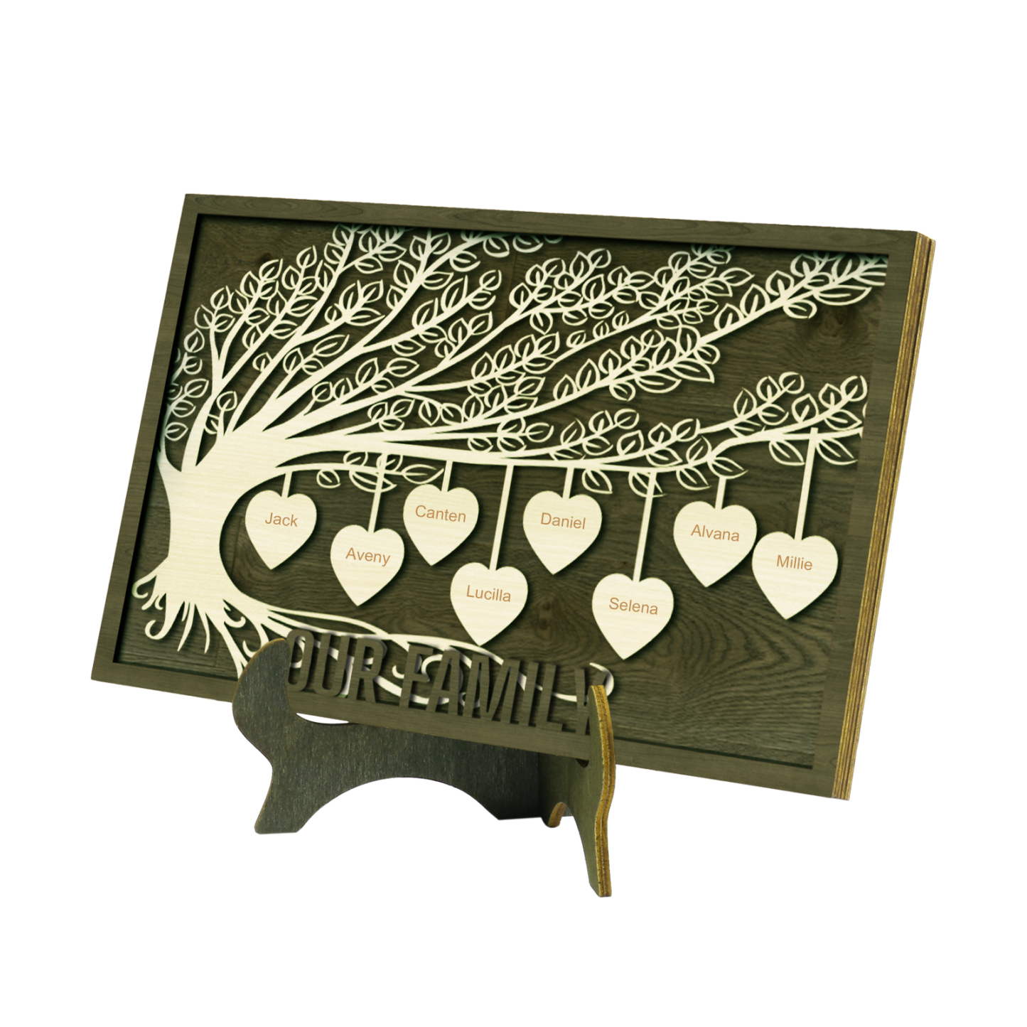 8 Names -Customized Tree Type Wooden Ornaments Decorations Text Our Family