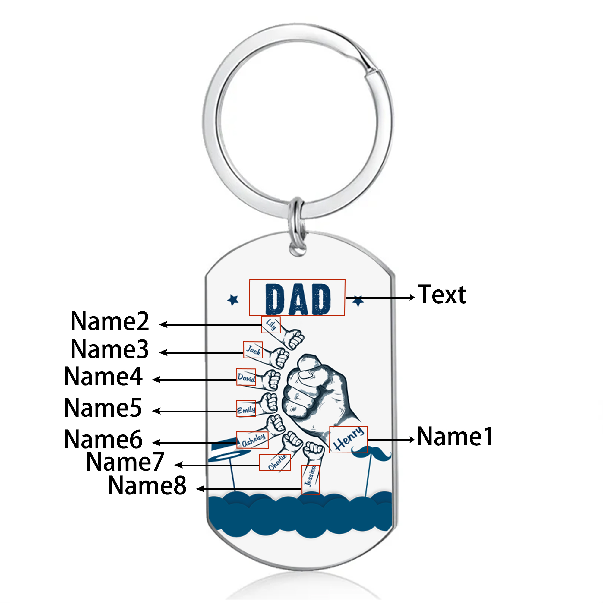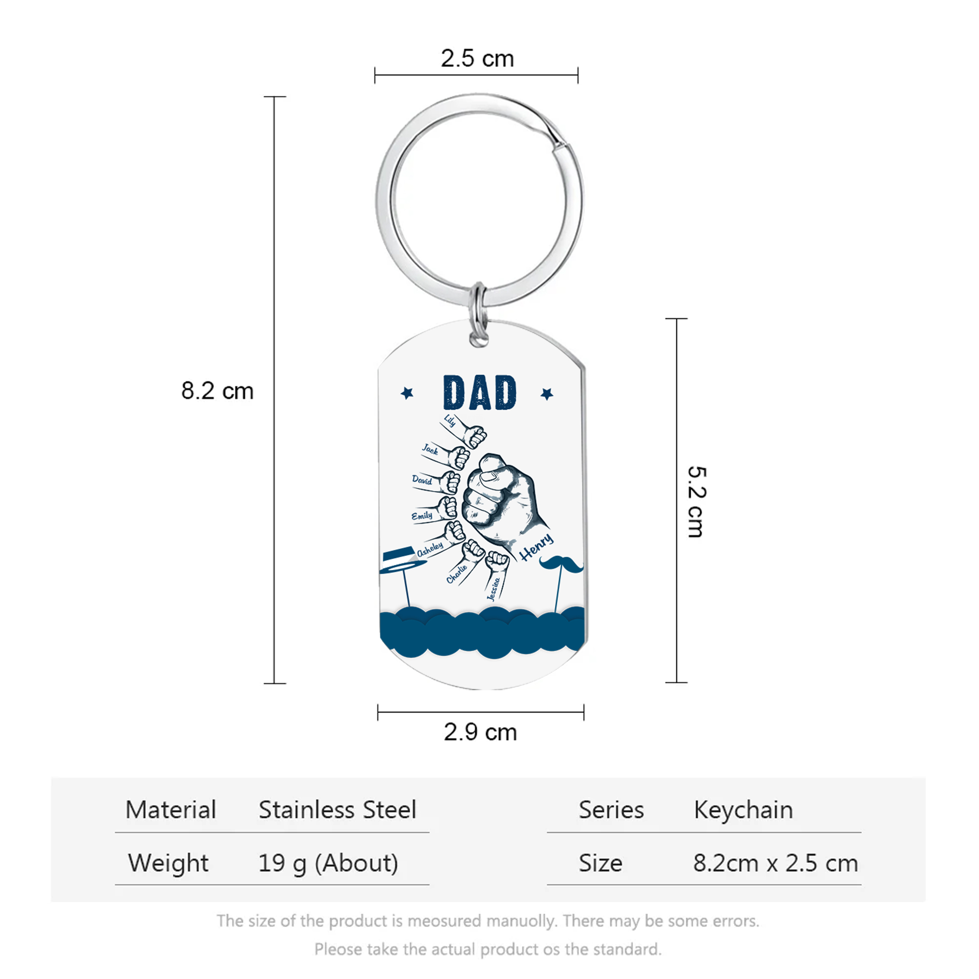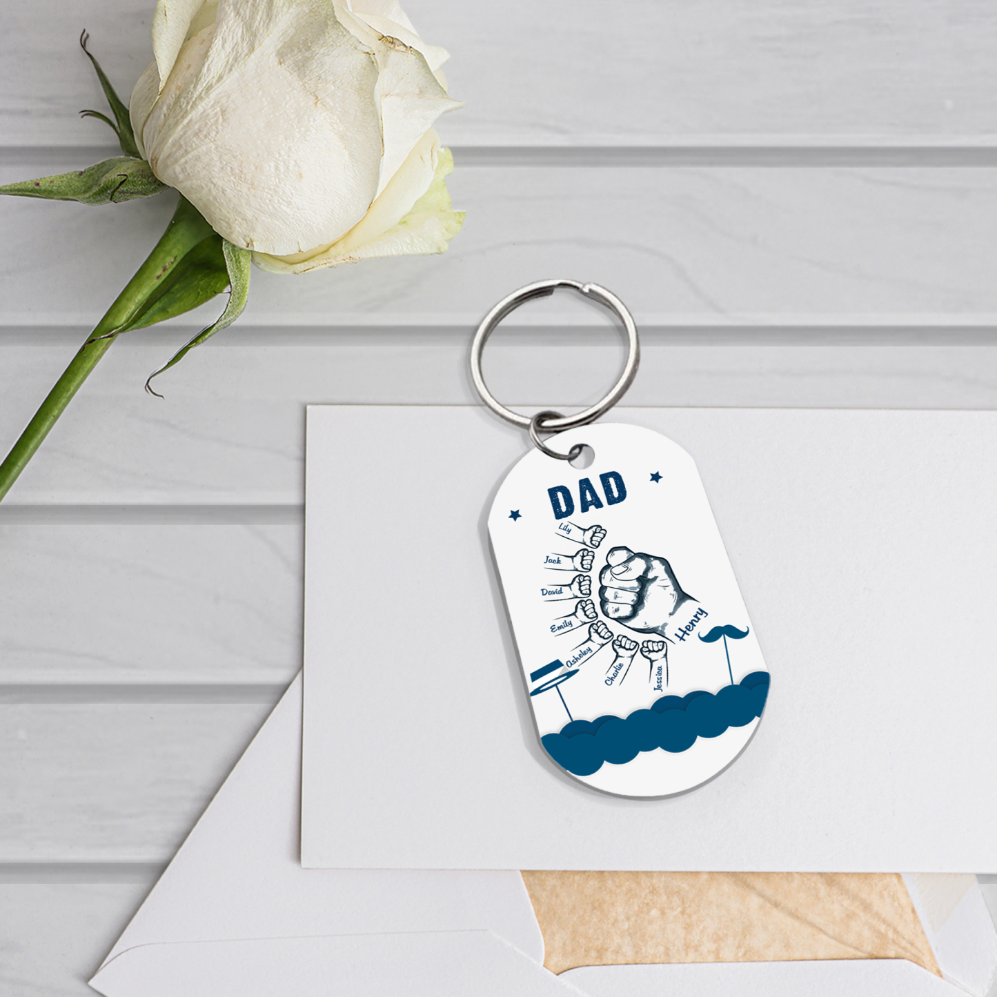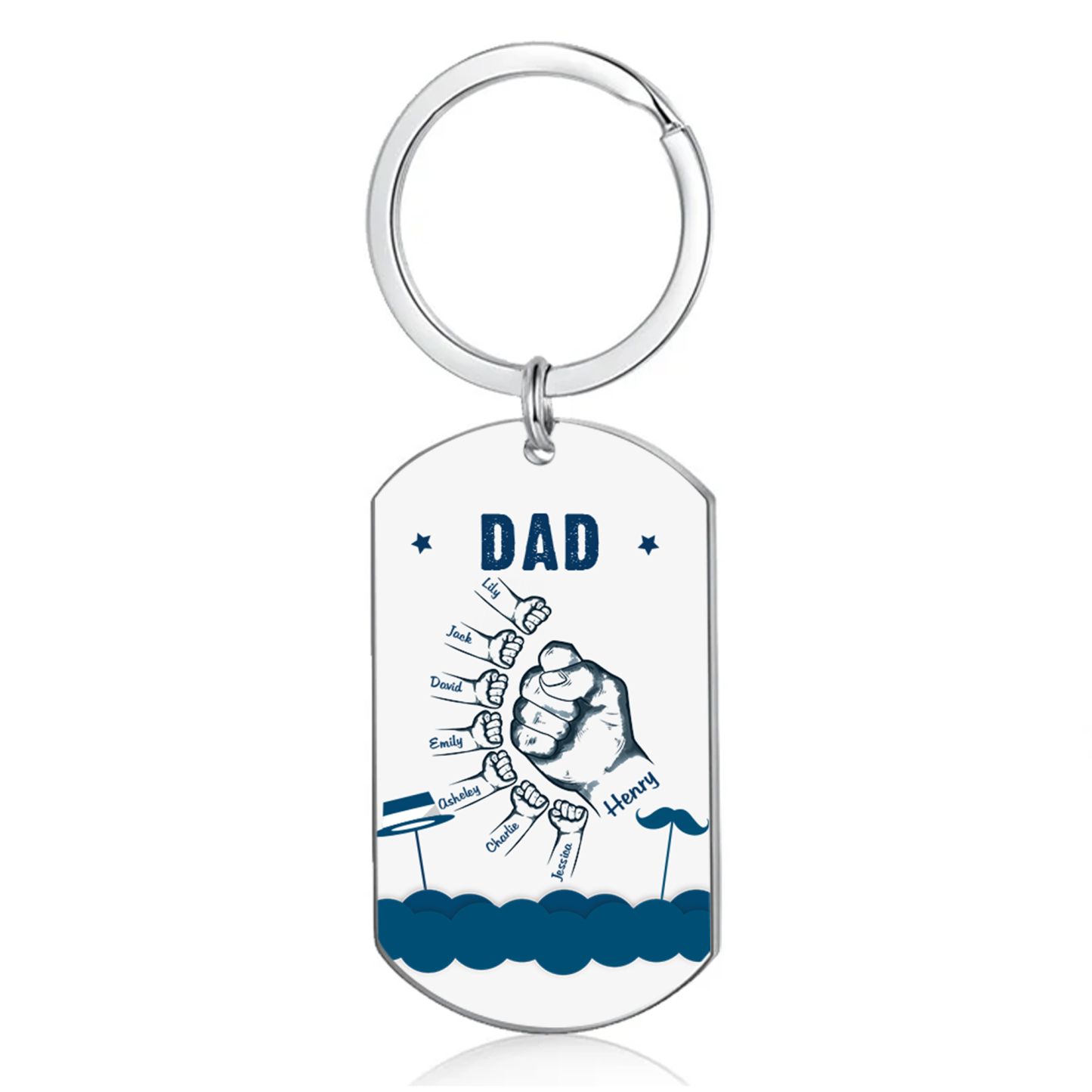 8 Names - Personalized Custom Fist Bump Keychain Hat and Beard Style Keychain Gift for Dad