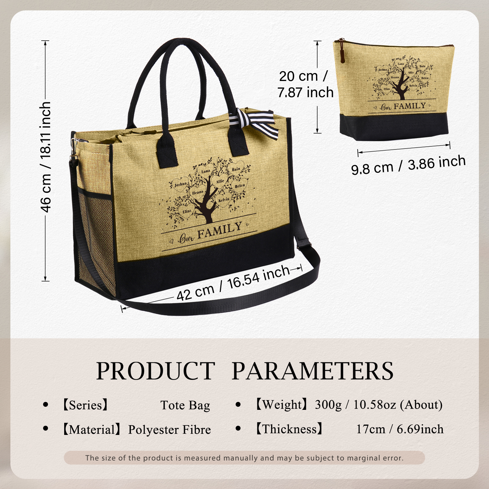 8 Names-Personalized Custom Text Handbag with Customized Name Tree of Life Home Storage Grid Bag As a Mother's Day Gift for Mom