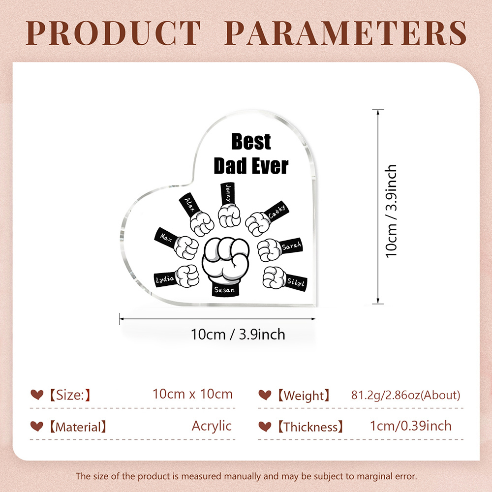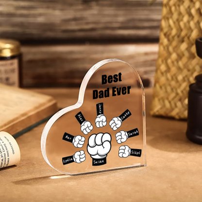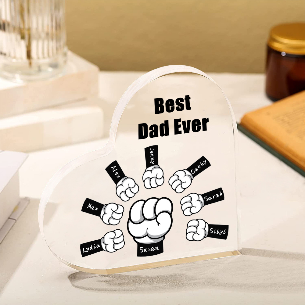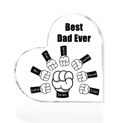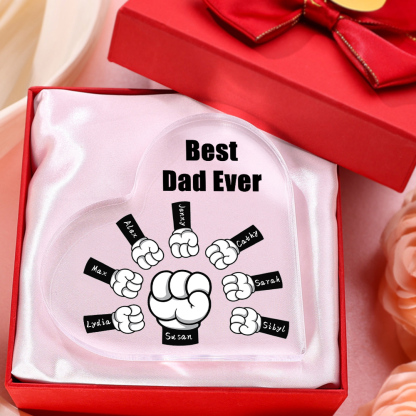 8 Names - Personalized Dad Fist Heart Acrylic Heart Keepsake Custom Text Acrylic Plaque Ornament Gift Set with Gift Box for Grandpa/Dad