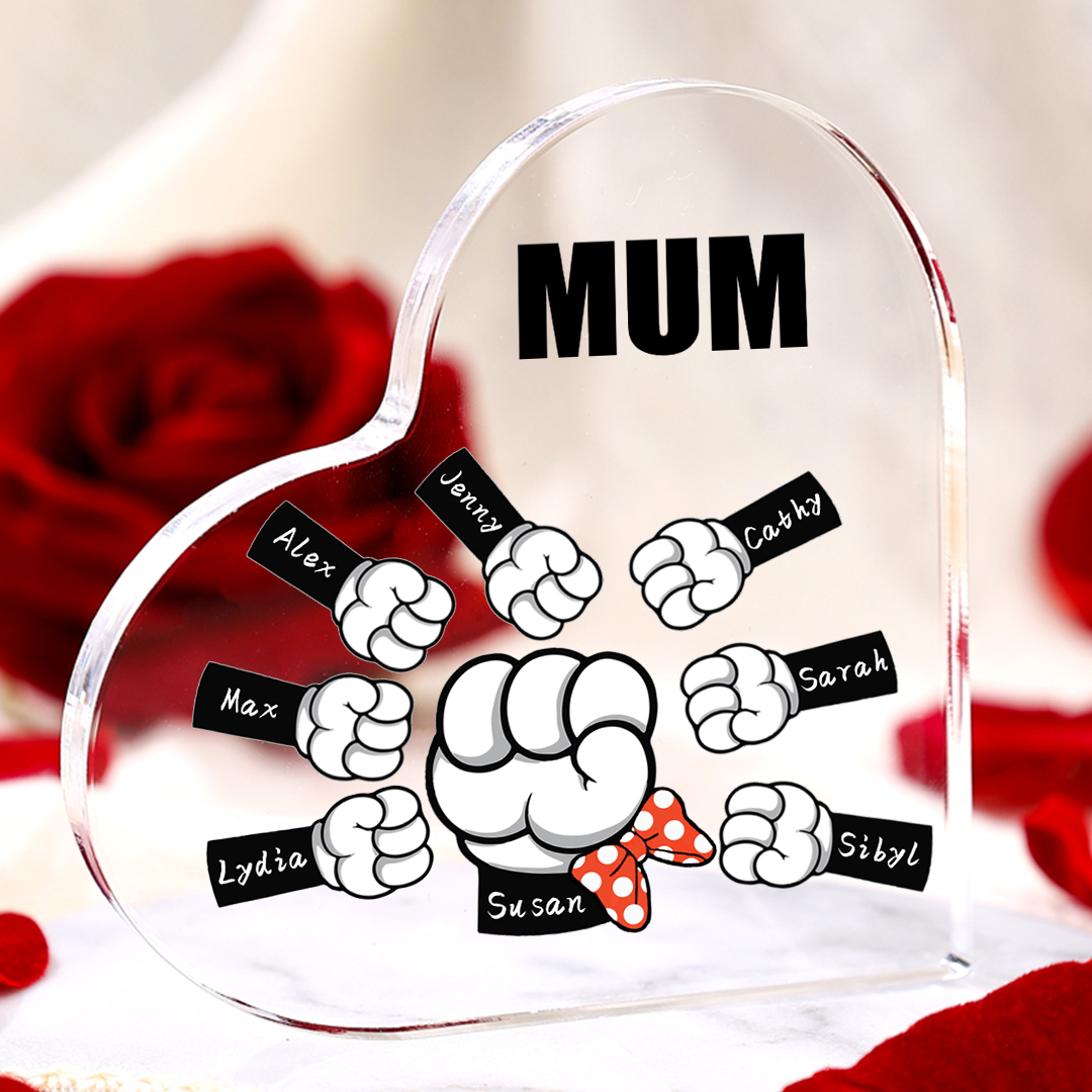 8 Names-Personalized Family Fist Bump Acrylic Ornament-Custom Text Acrylic Family Heart Keepsake Desktop Ornament For Family