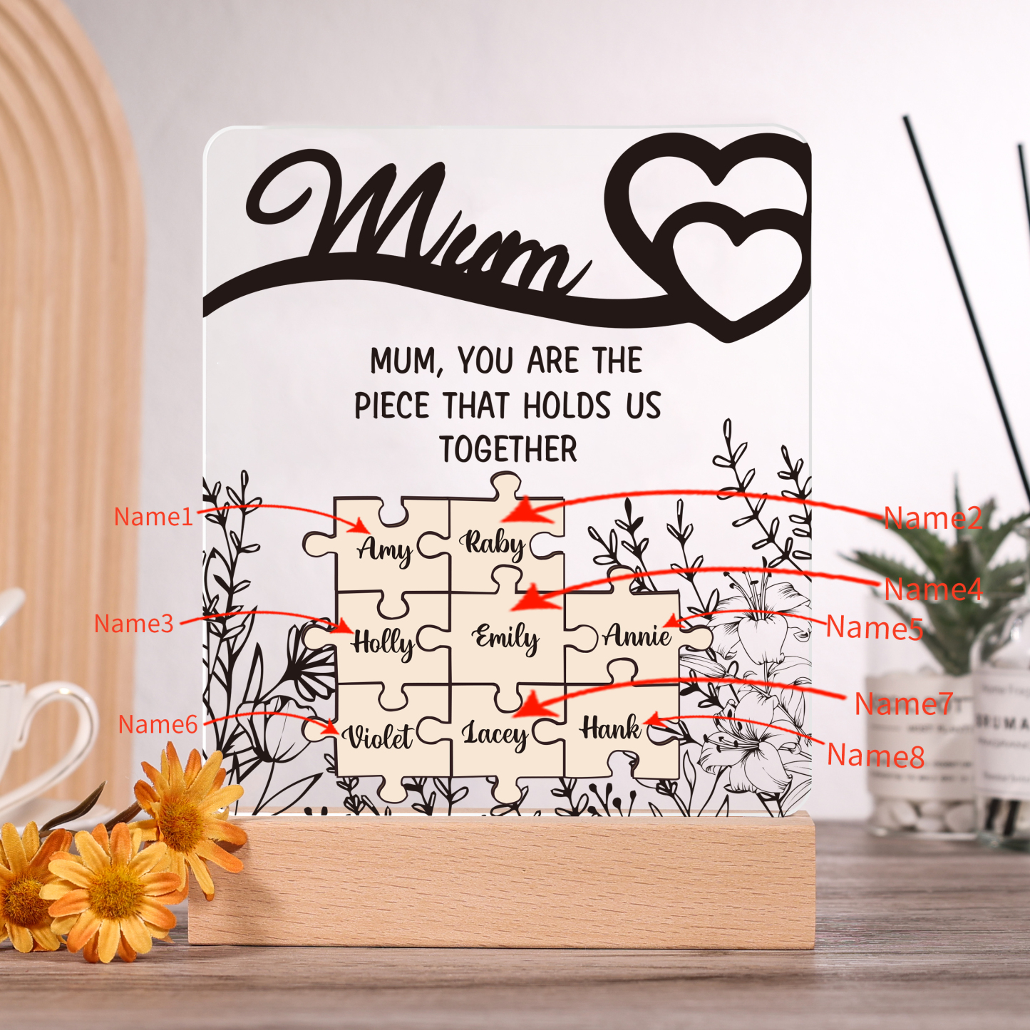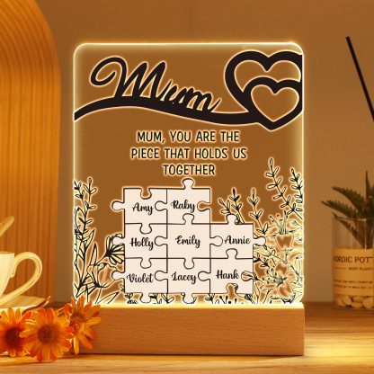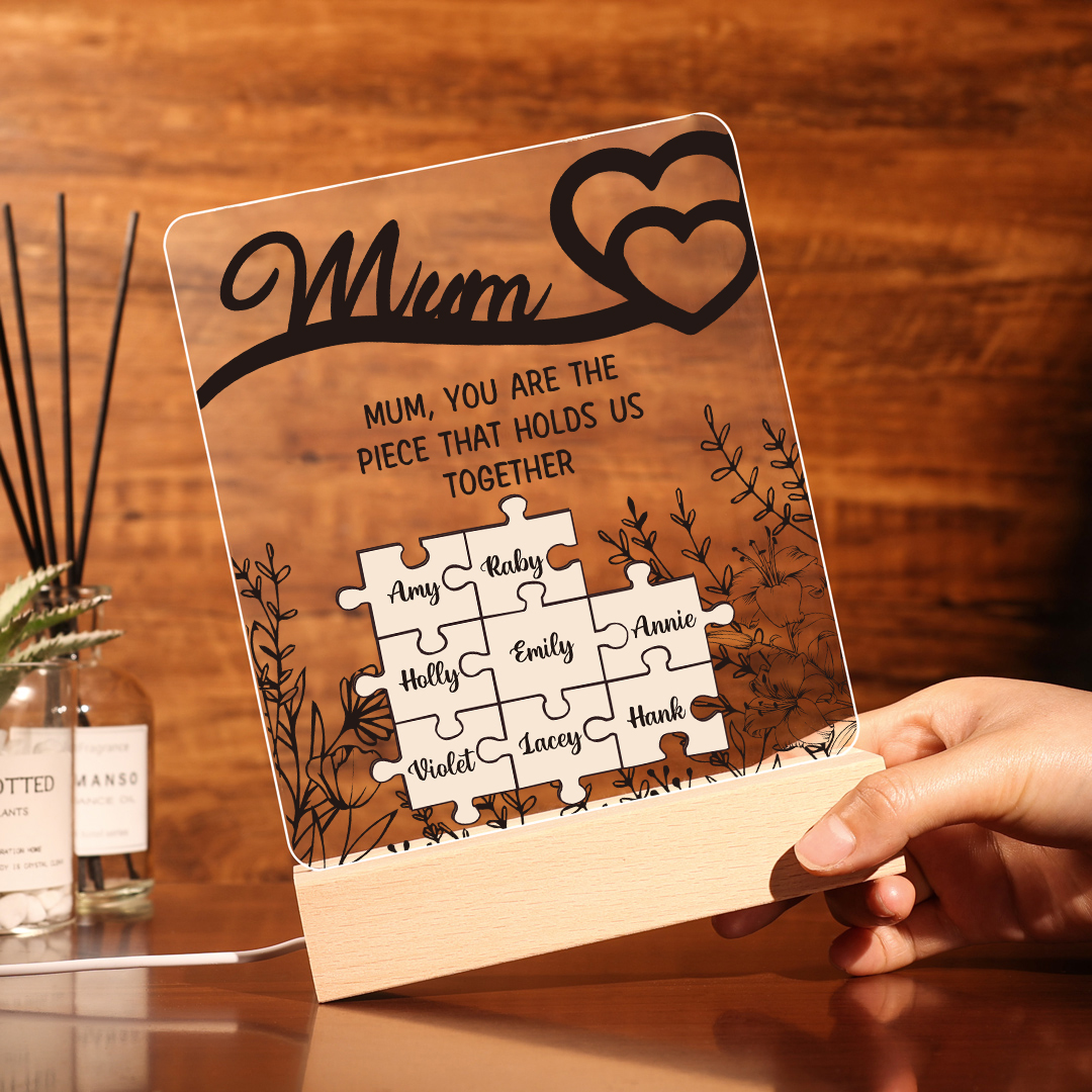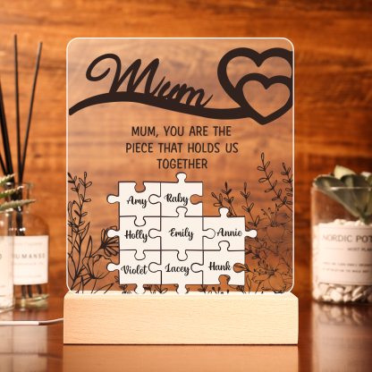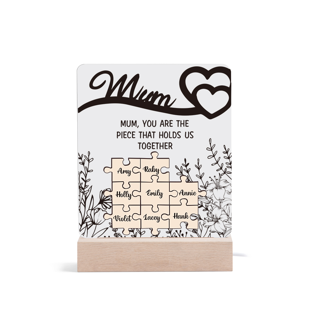8 Names-Personalized Family Puzzle Acrylic Night Light, Mum You Are The Piece That Holds Us Together Gift For Mum