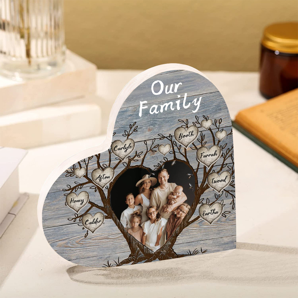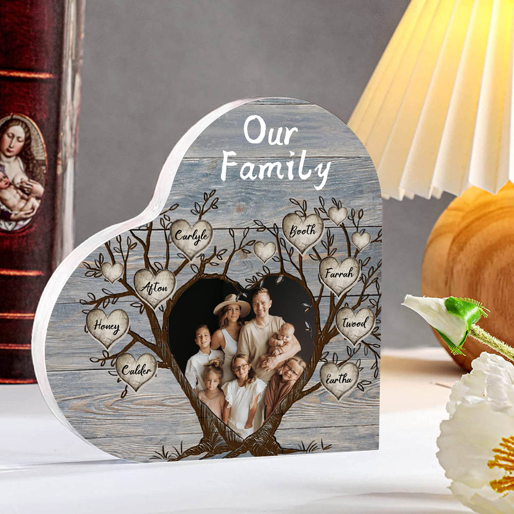 8 Names-Personalized Family Tree Acrylic Ornament-Custom Acrylic Family Heart Keepsake Desktop Ornament for family-Mum/Nan/Nana/Grandma