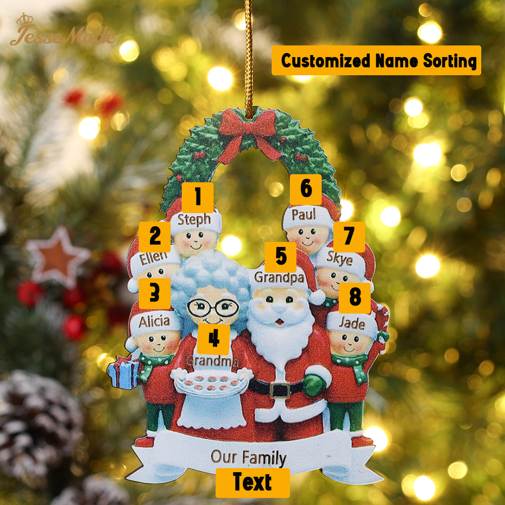 8 Names-Personalized Family Wooden Christmas Xmas Tree Decoration Ornament-Custom 8 Names Hanging Ornament Gifts For Family