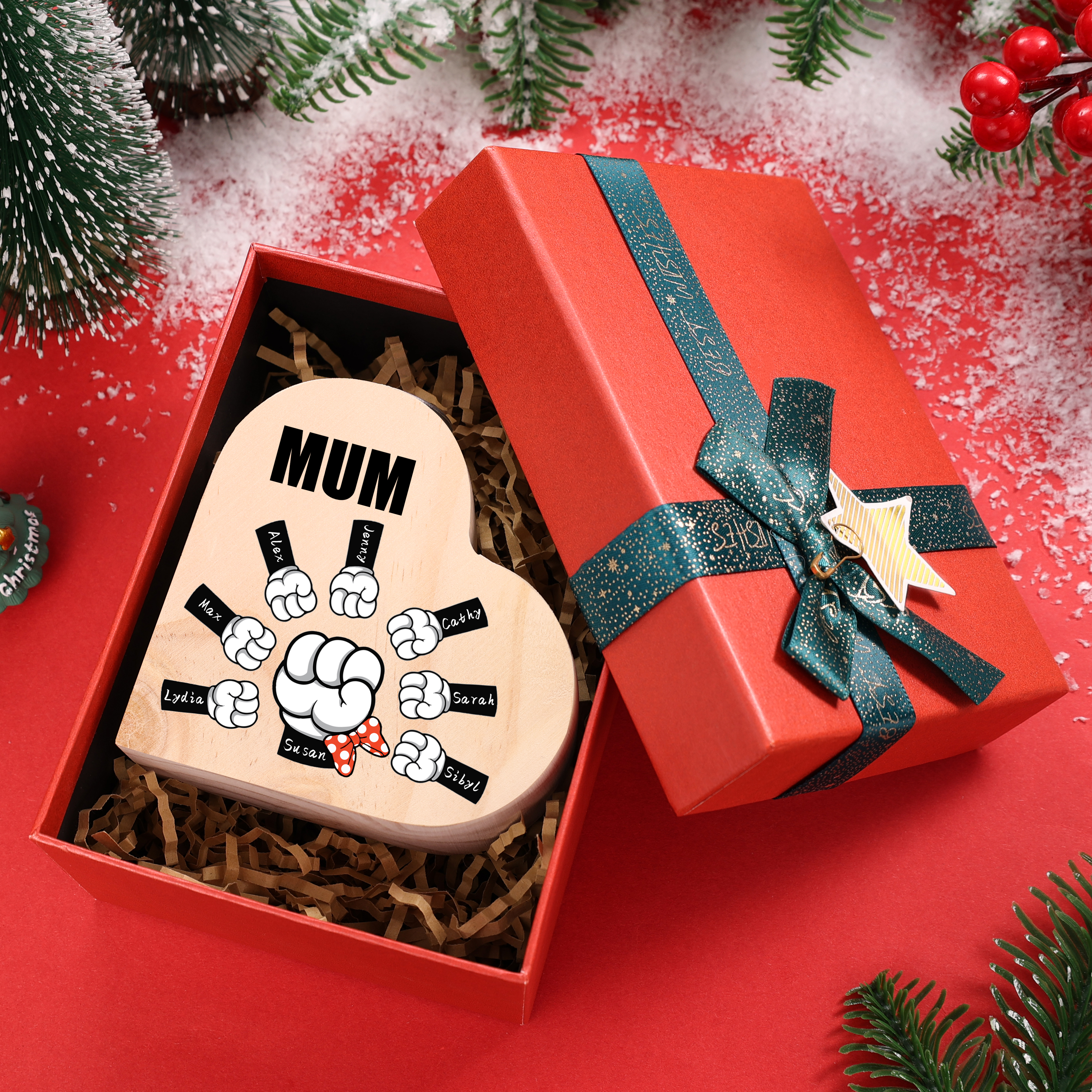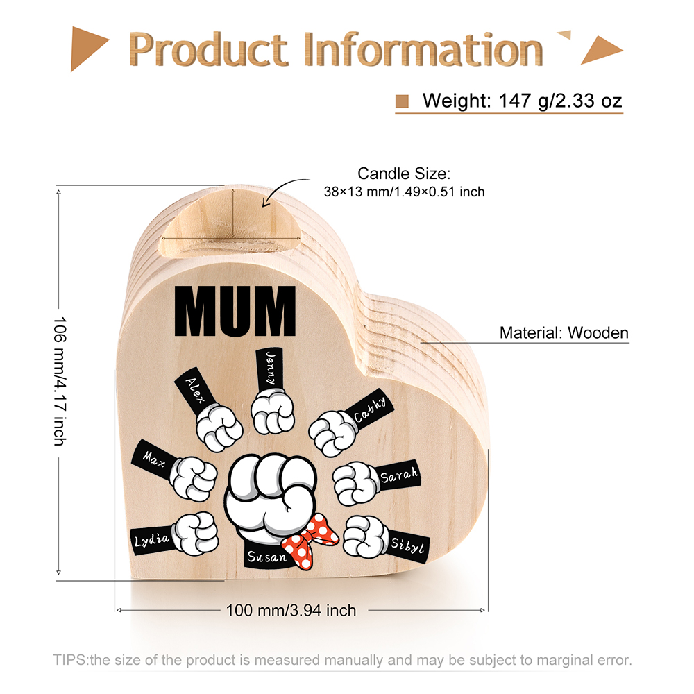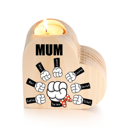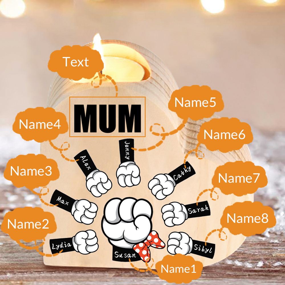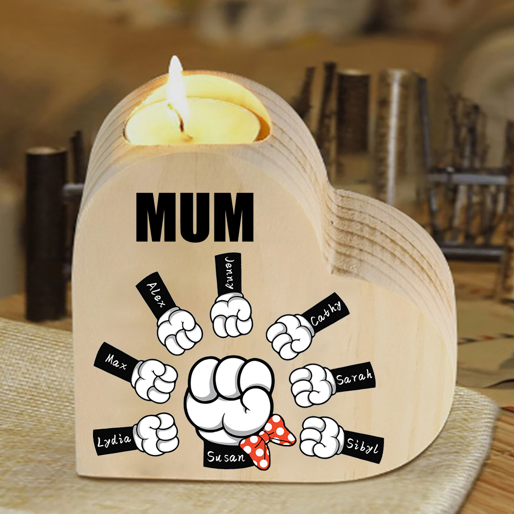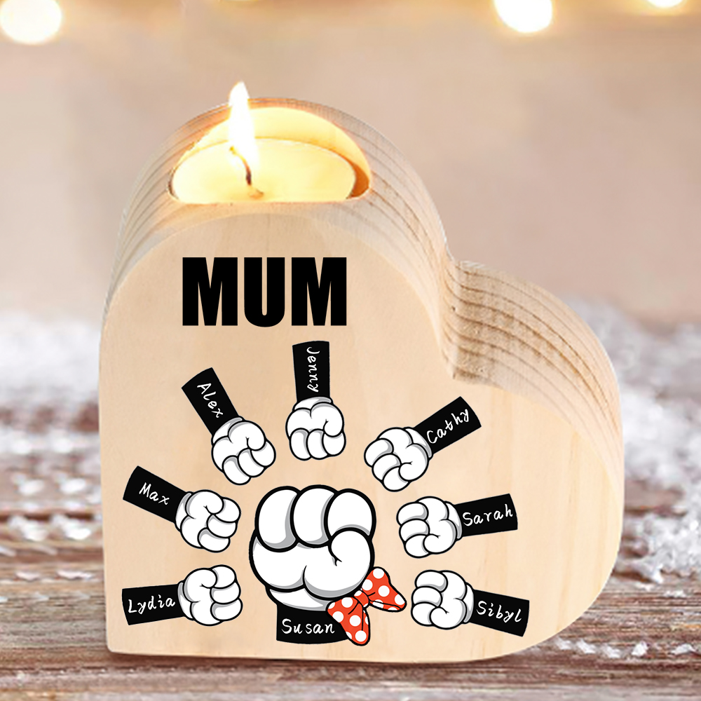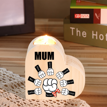 8 Names-Personalized Fist Bump Heart-Shape Candlestick Custom Text Mother's Day Gift Wooden Custom Candle Holder For Mum