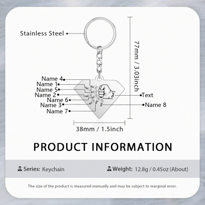 8 Names - Personalized Fist Bump Keychain Engraved Kids Names and text Keychain Gifts for Dad/Grandad