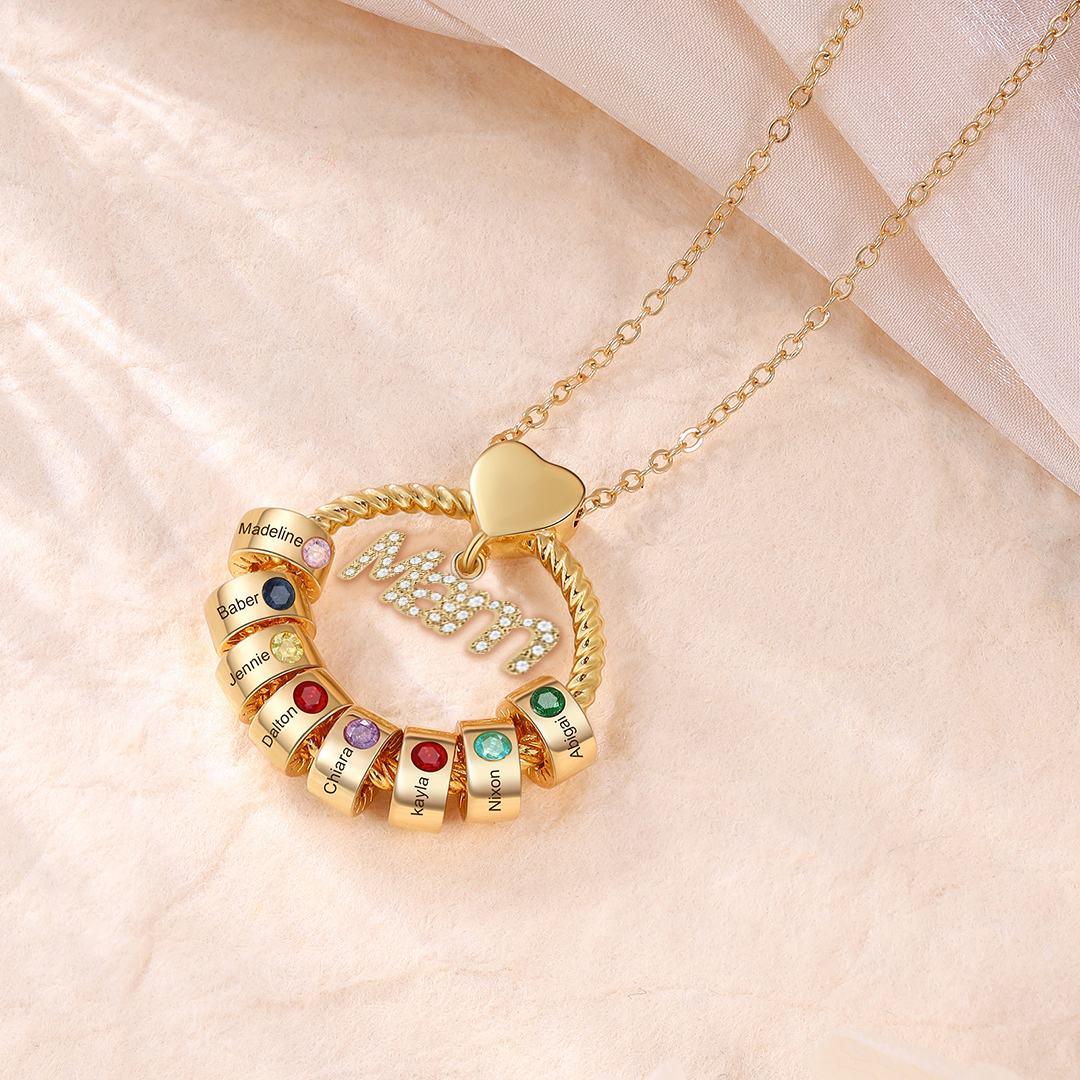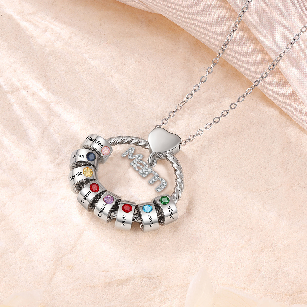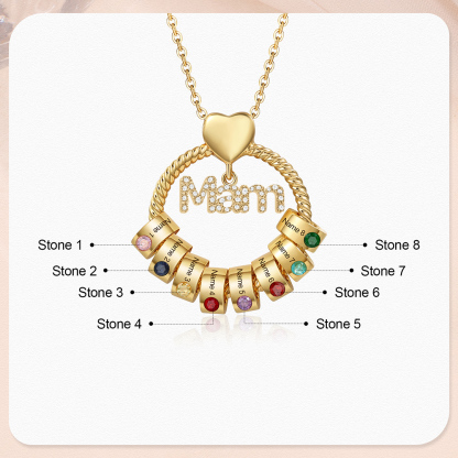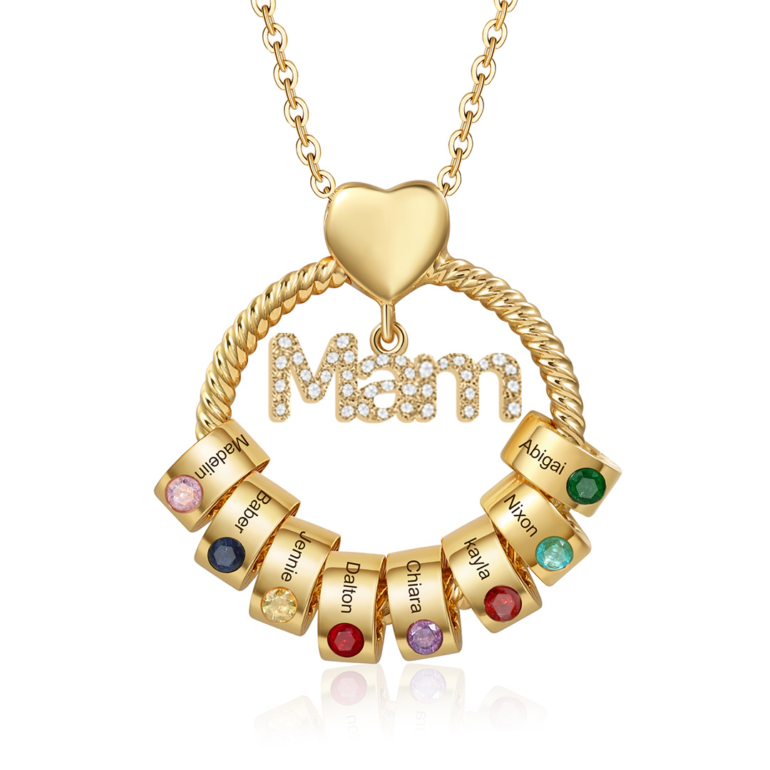 8 Names-Personalized Mam Circle Necklace With 8 Birthstones Pendant Engraved Names Gift For Mother