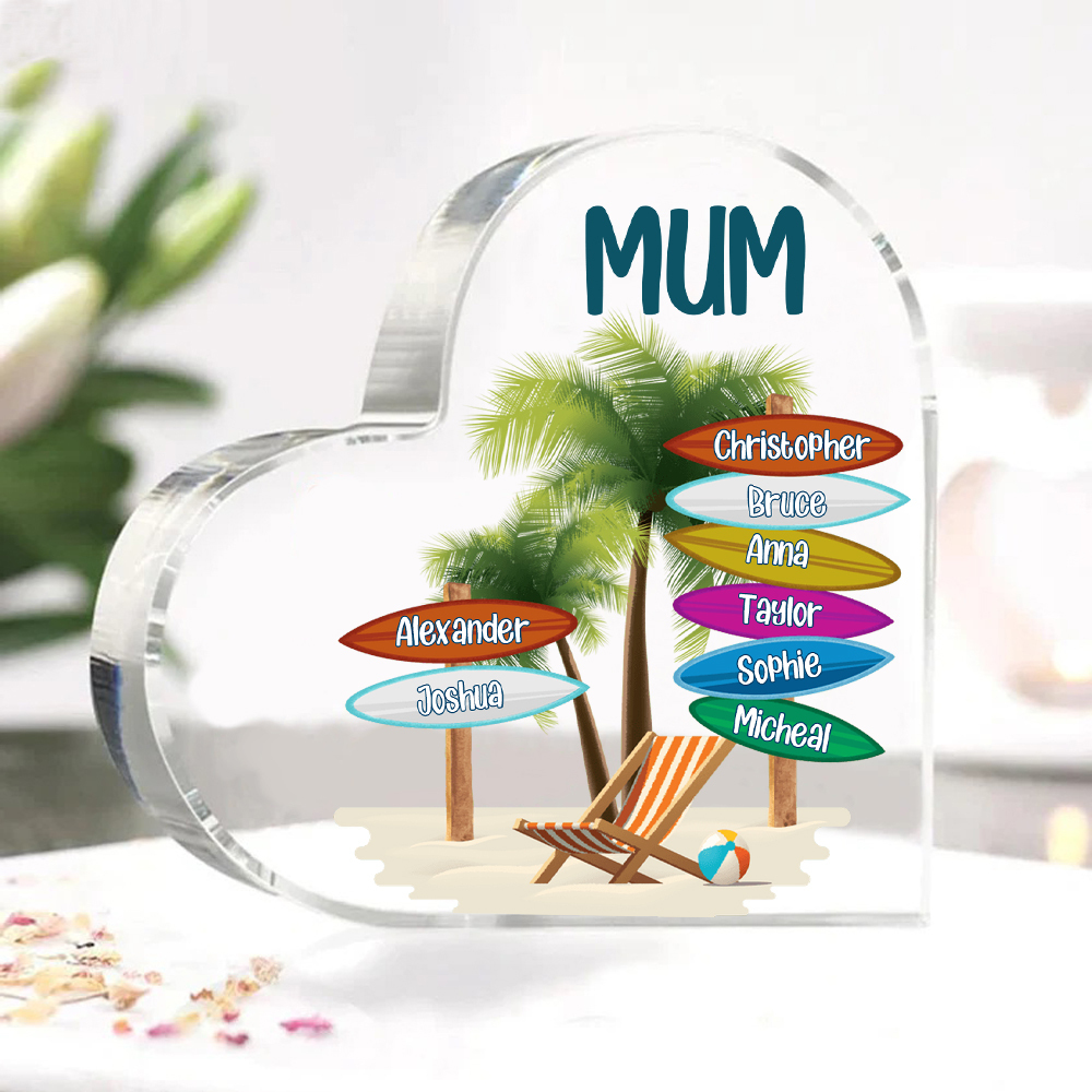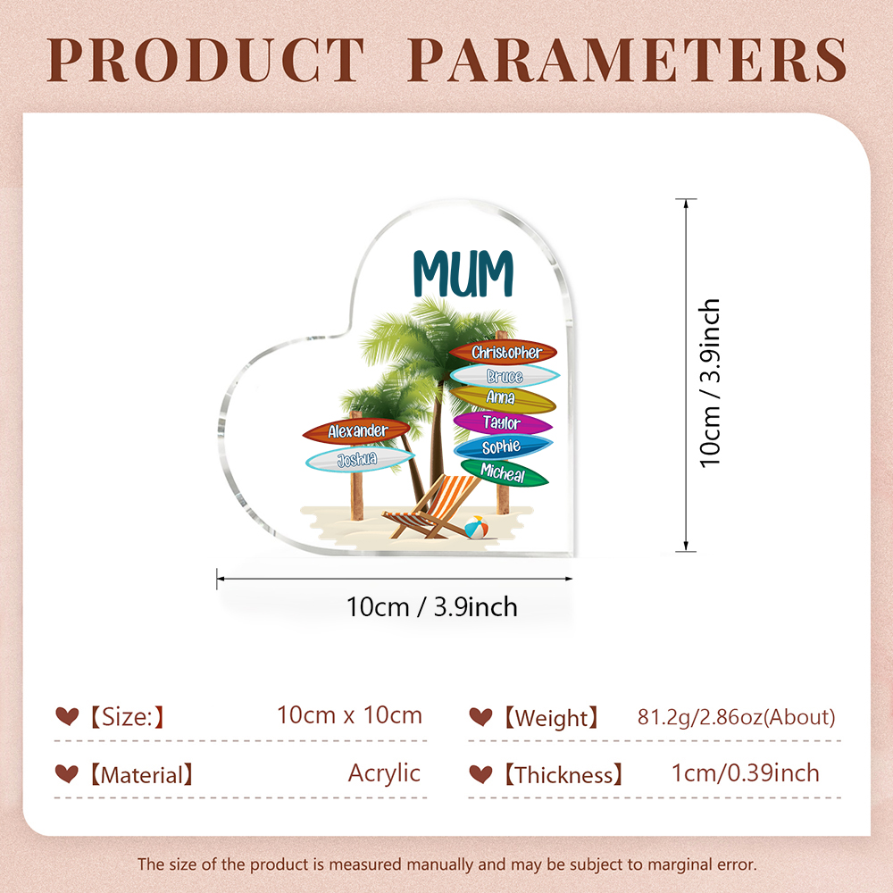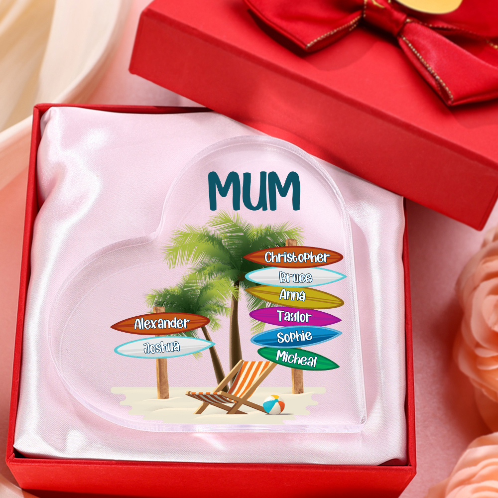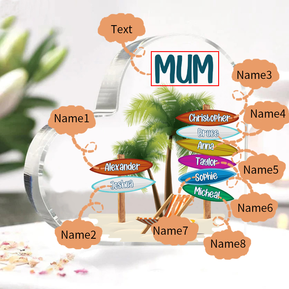 8 Names-Personalized Mum Vacation Acrylic Heart Keepsake Custom Text Acrylic Plaque Ornaments Gifts Set With Gift Box for Nan/Mother