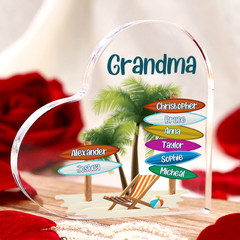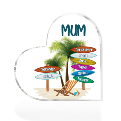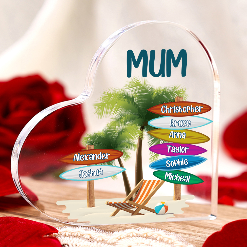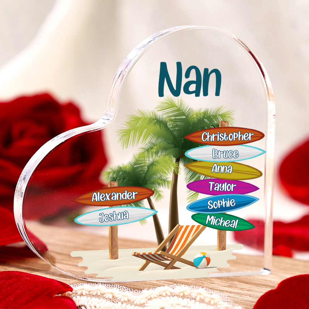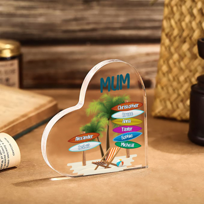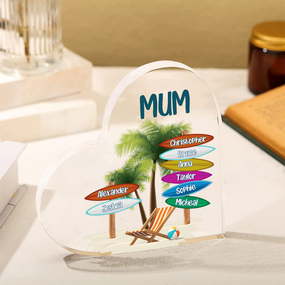 8 Names-Personalized Mum Vacation Acrylic Heart Keepsake Custom Text Acrylic Plaque Ornaments Gifts Set With Gift Box for Nan/Mother