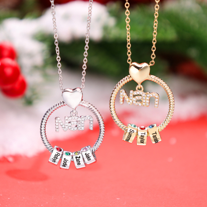 8 Names-Personalized Nan Circle Necklace Set With Premium Rotating Rose Flower Gift Box-Custom Woman Necklace With 8 Birthstones Engraved Names Gift For Nan/Nana/Nanny/Granny
