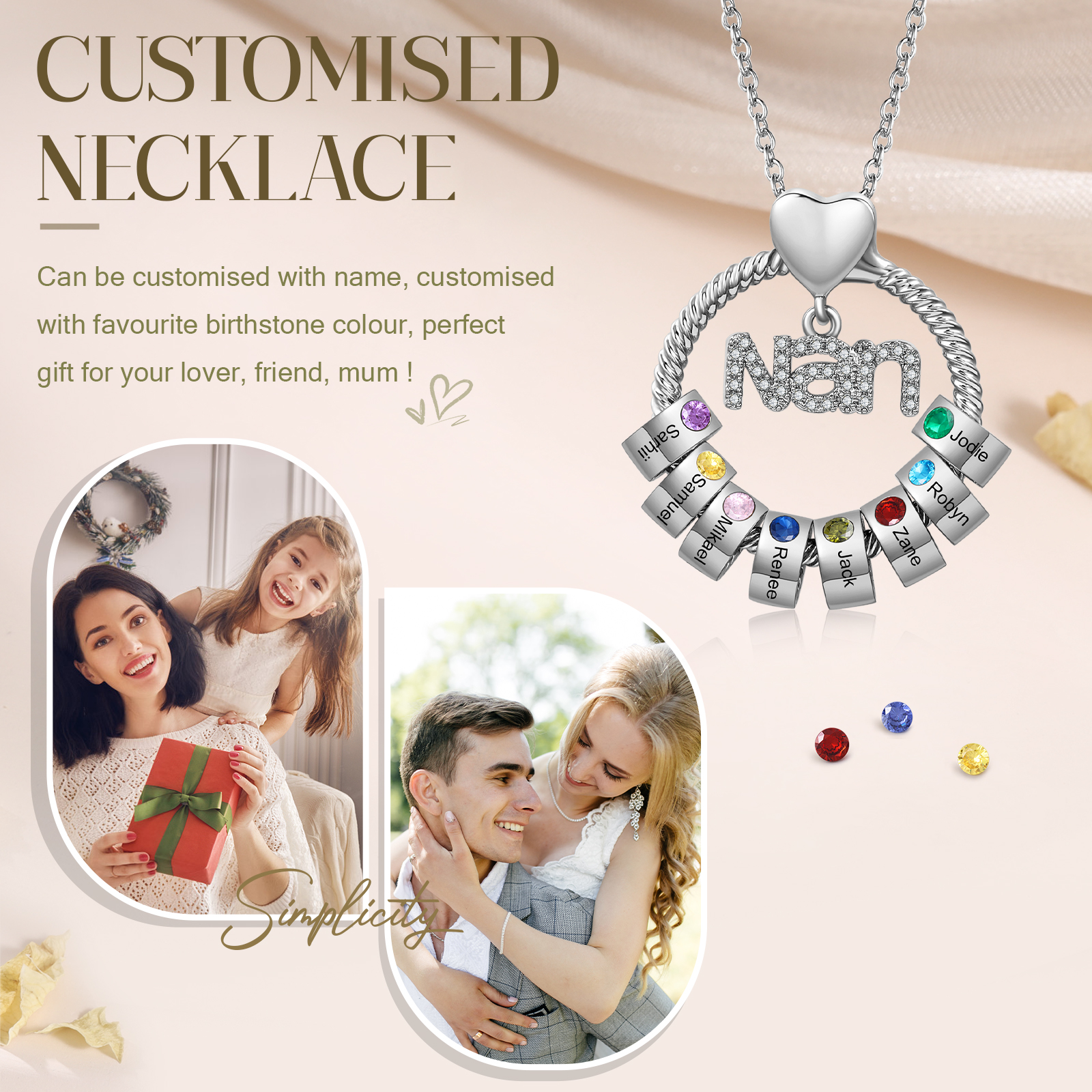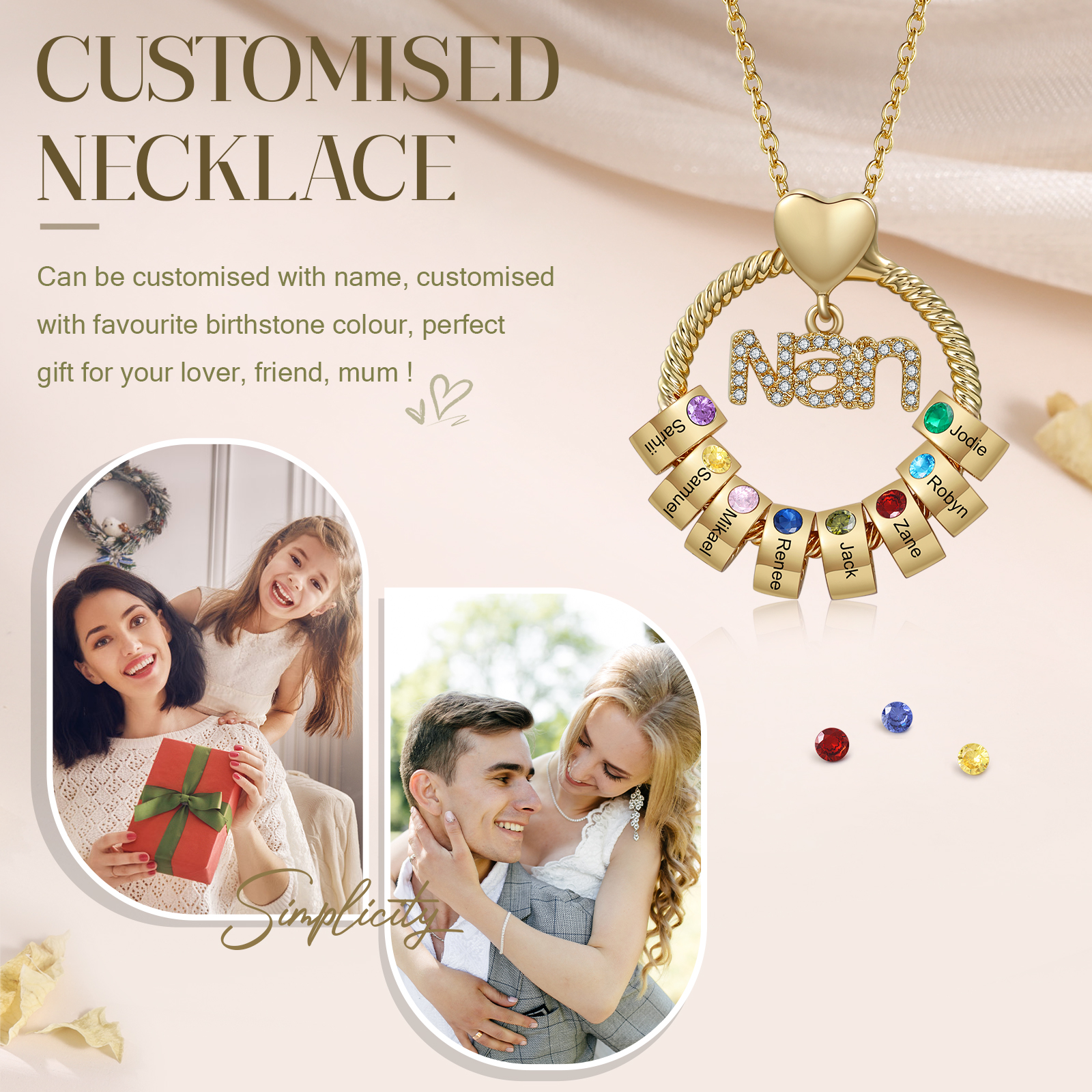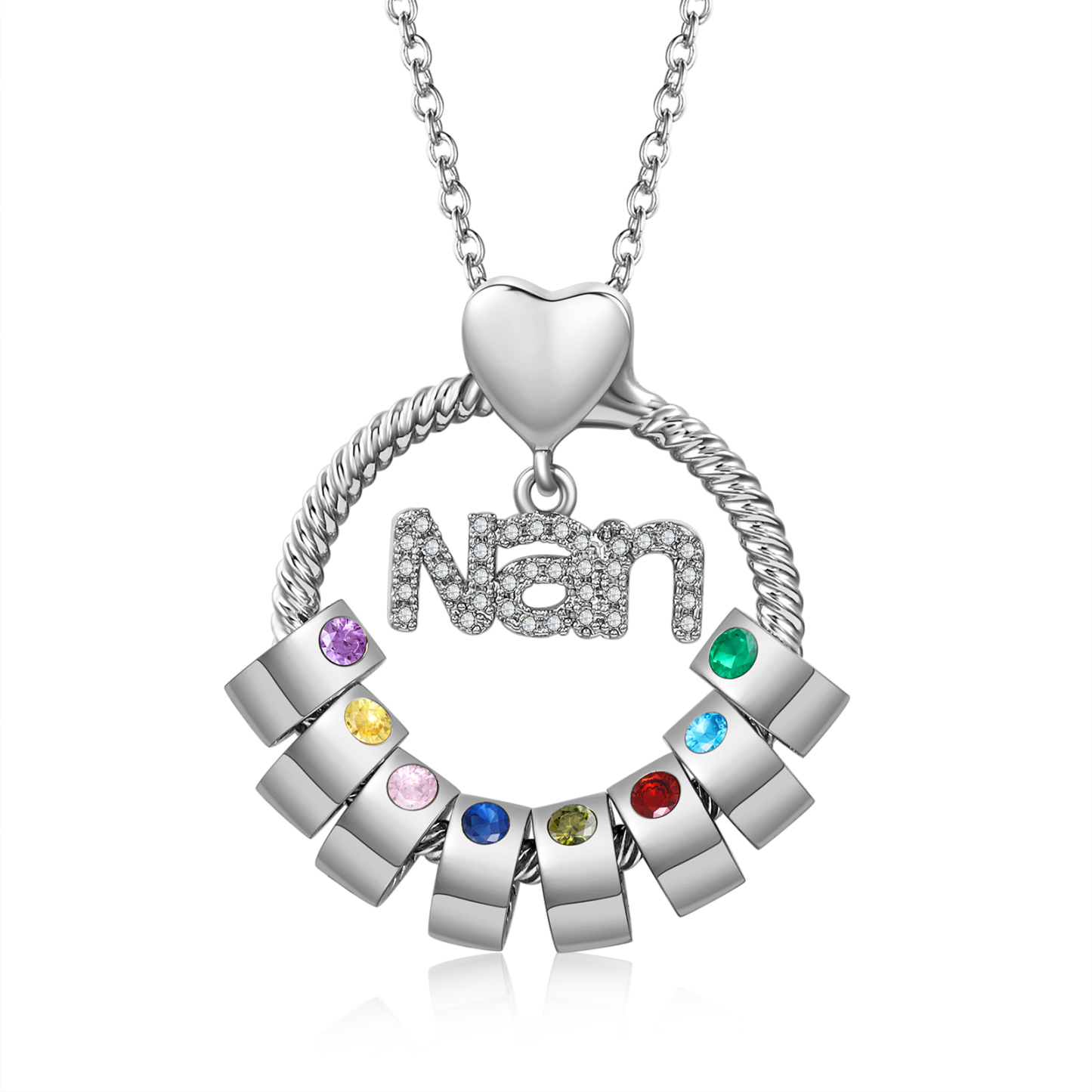 Each pendant is engraved with an inscription in delicate typography, and each is encrusted with a Swarovski crystal birthstone for the perfect finishing touch. This is a surprise gift for your Nan.