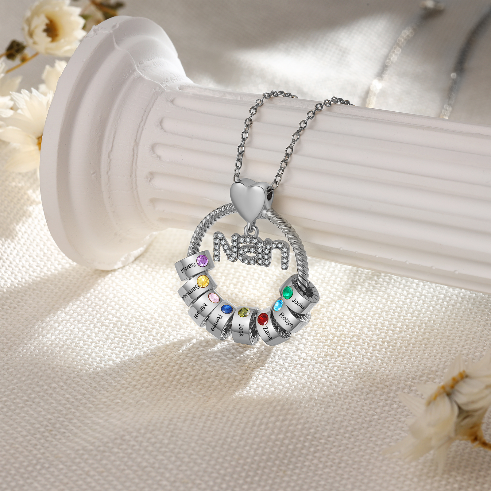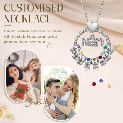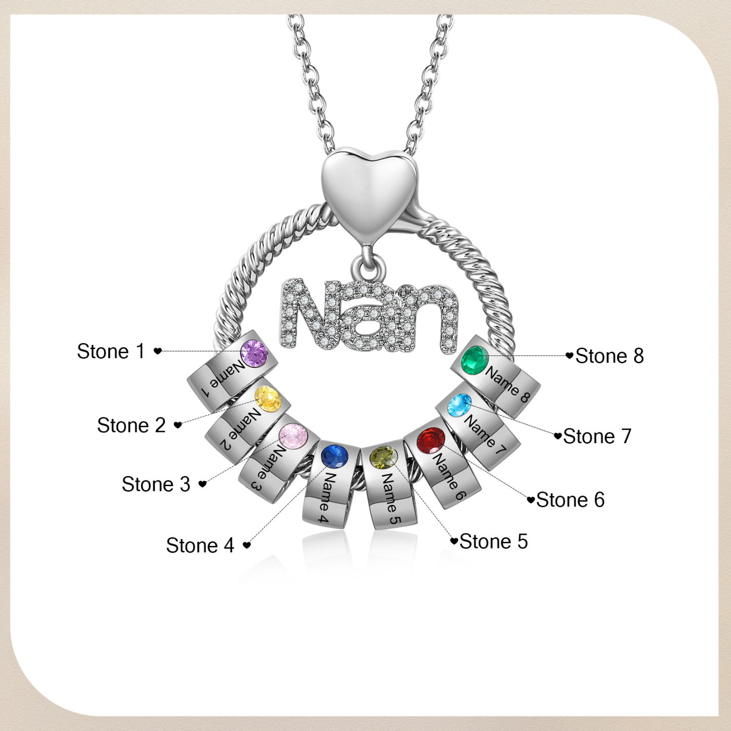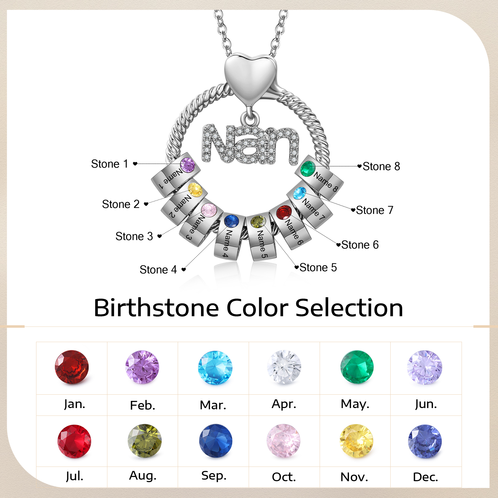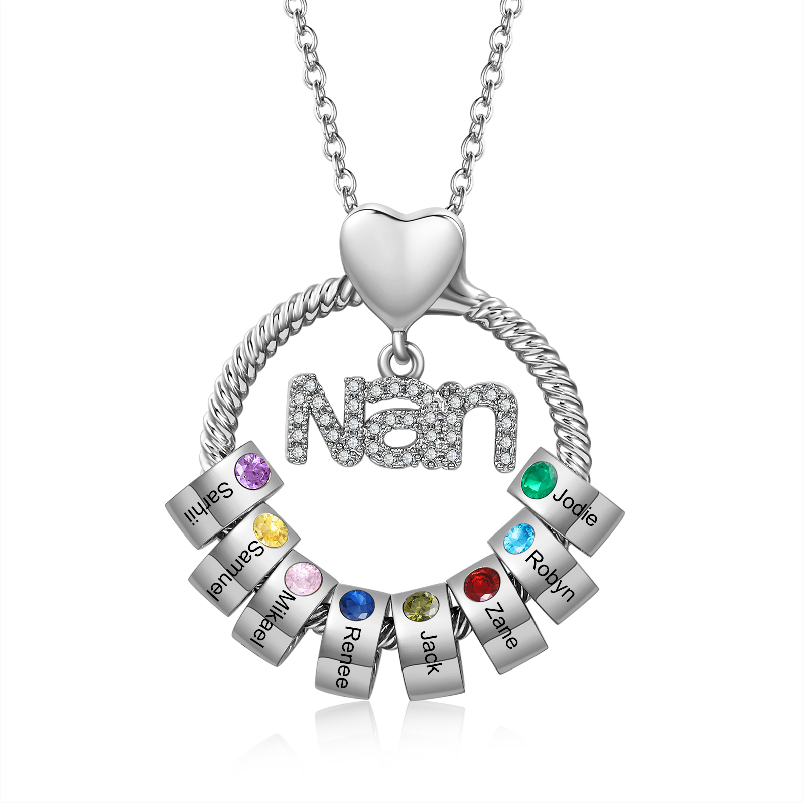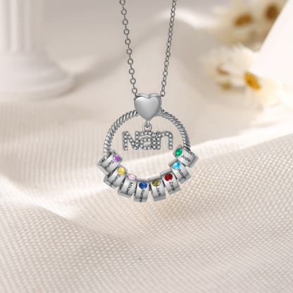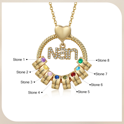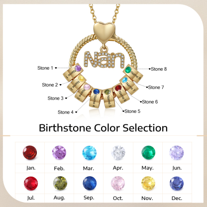 8 Names-Personalized Nan Circle Necklace Set With Rose Flower Gift Box-Custom Woman Necklace With 8 Birthstones Engraved Names Gift For Nan/Nana/Nanny/Granny