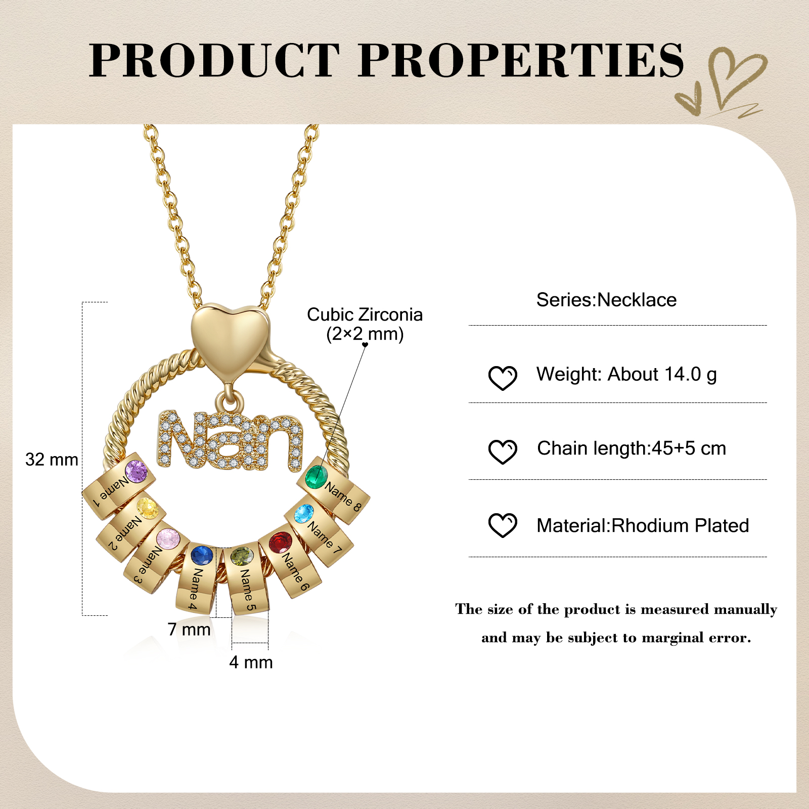 - Product Type: Personalized Name Necklace, birthstone bead Charm