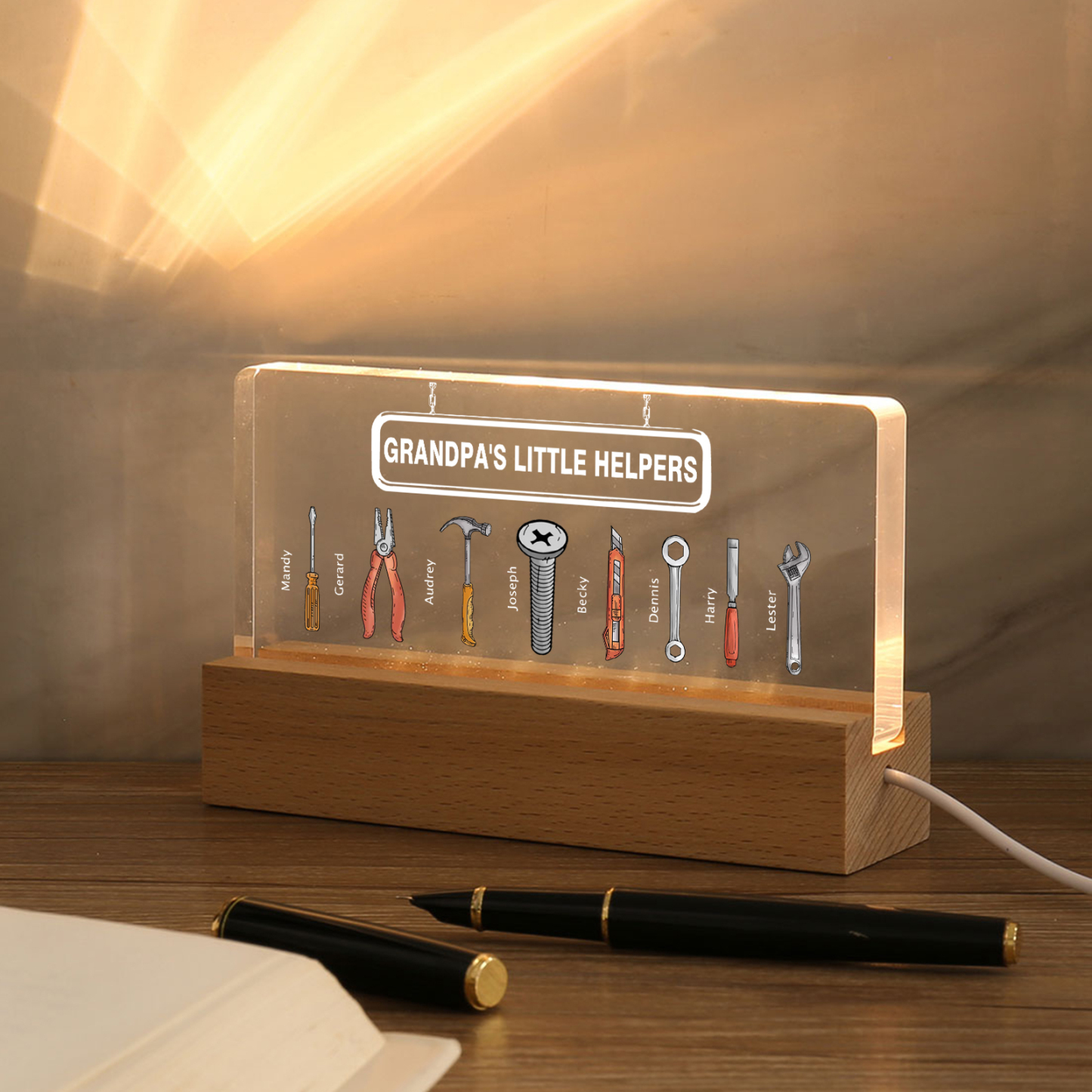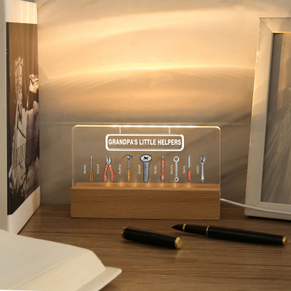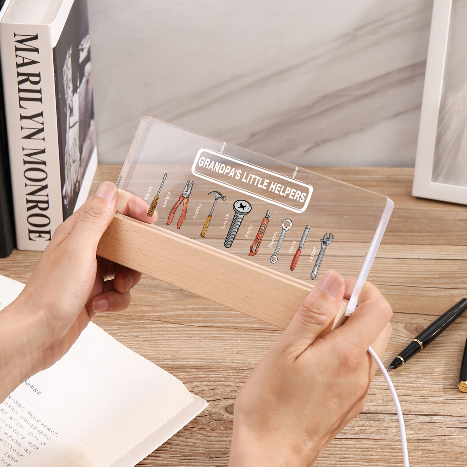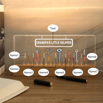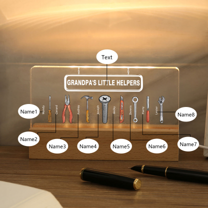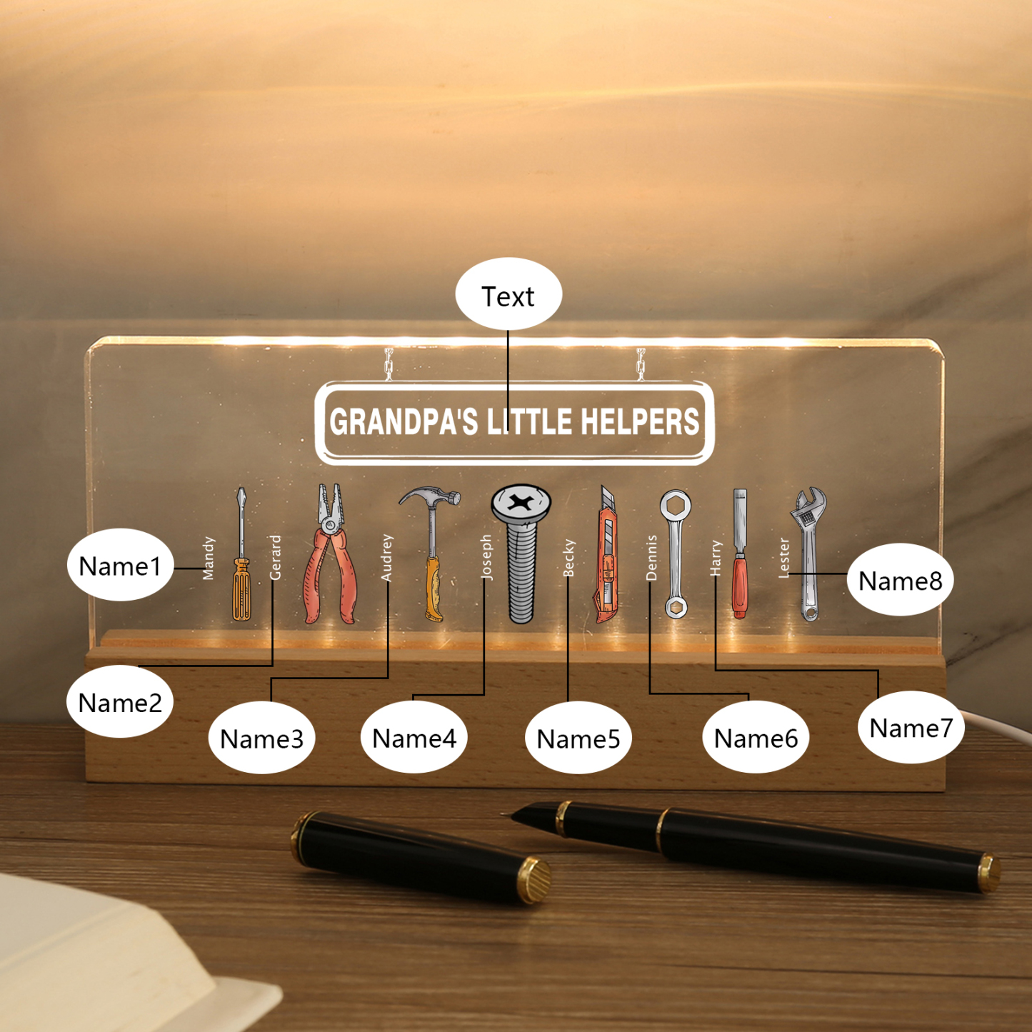 8 Names - Personalized Repair Tool Pattern Table Lamp Customized Text Father's Day Gift for Grandpa/Dad