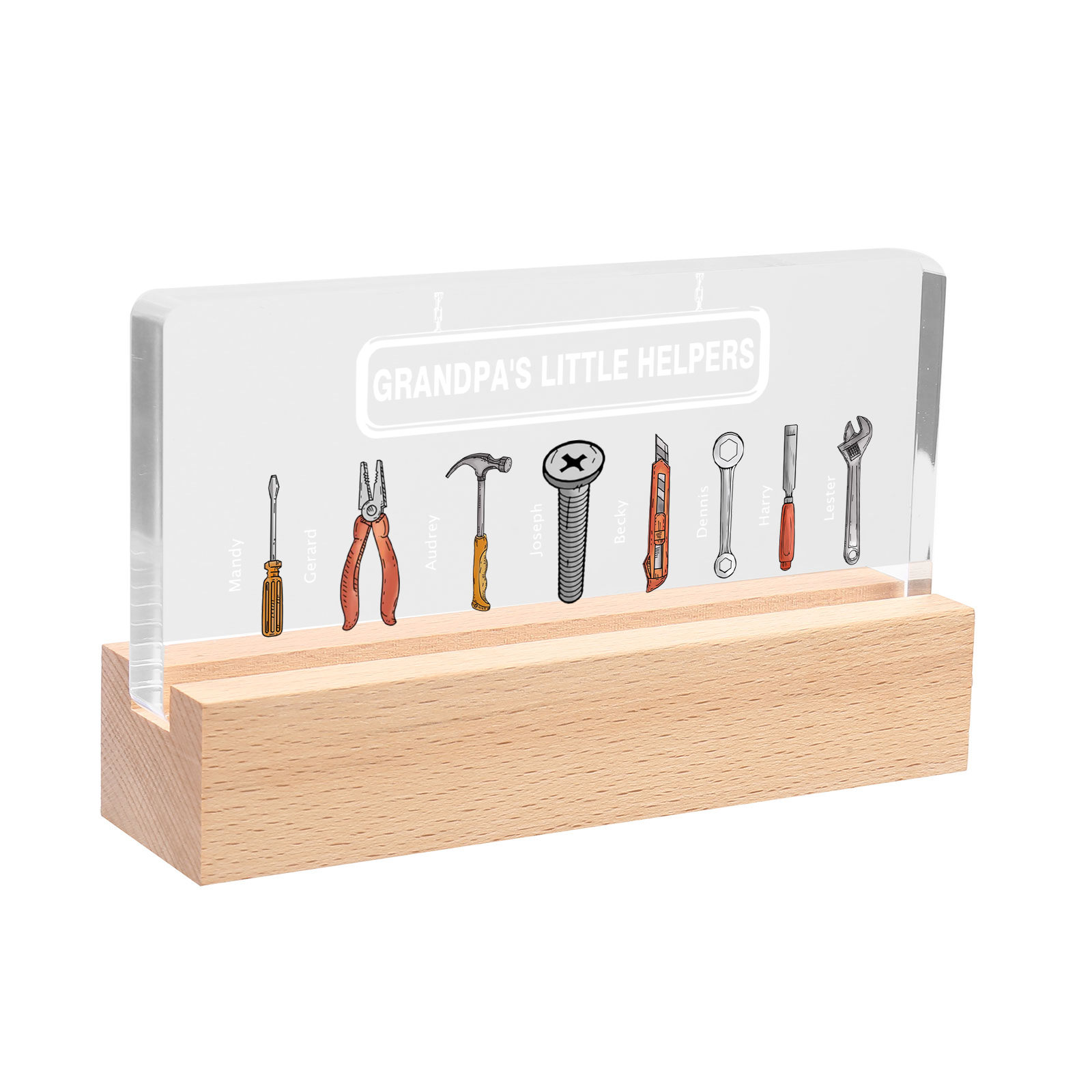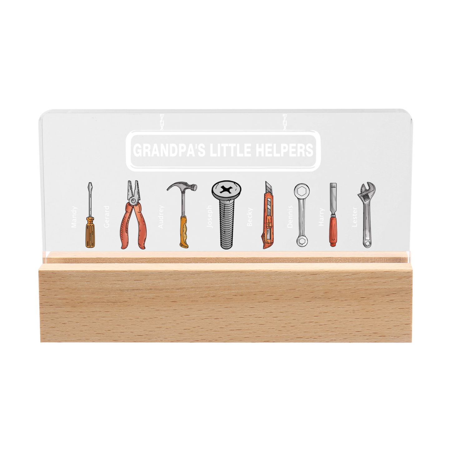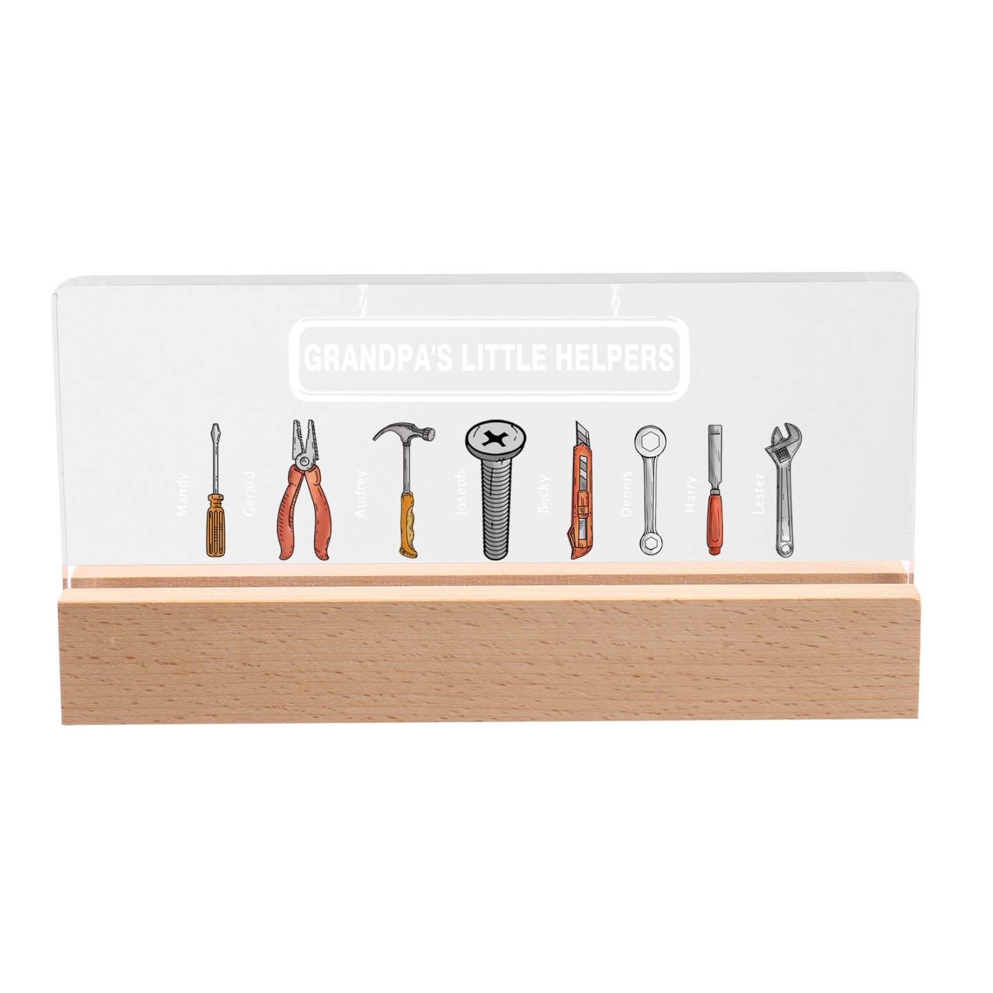 8 Names - Personalized Repair Tool Pattern Table Lamp Customized Text Father's Day Gift for Grandpa/Dad