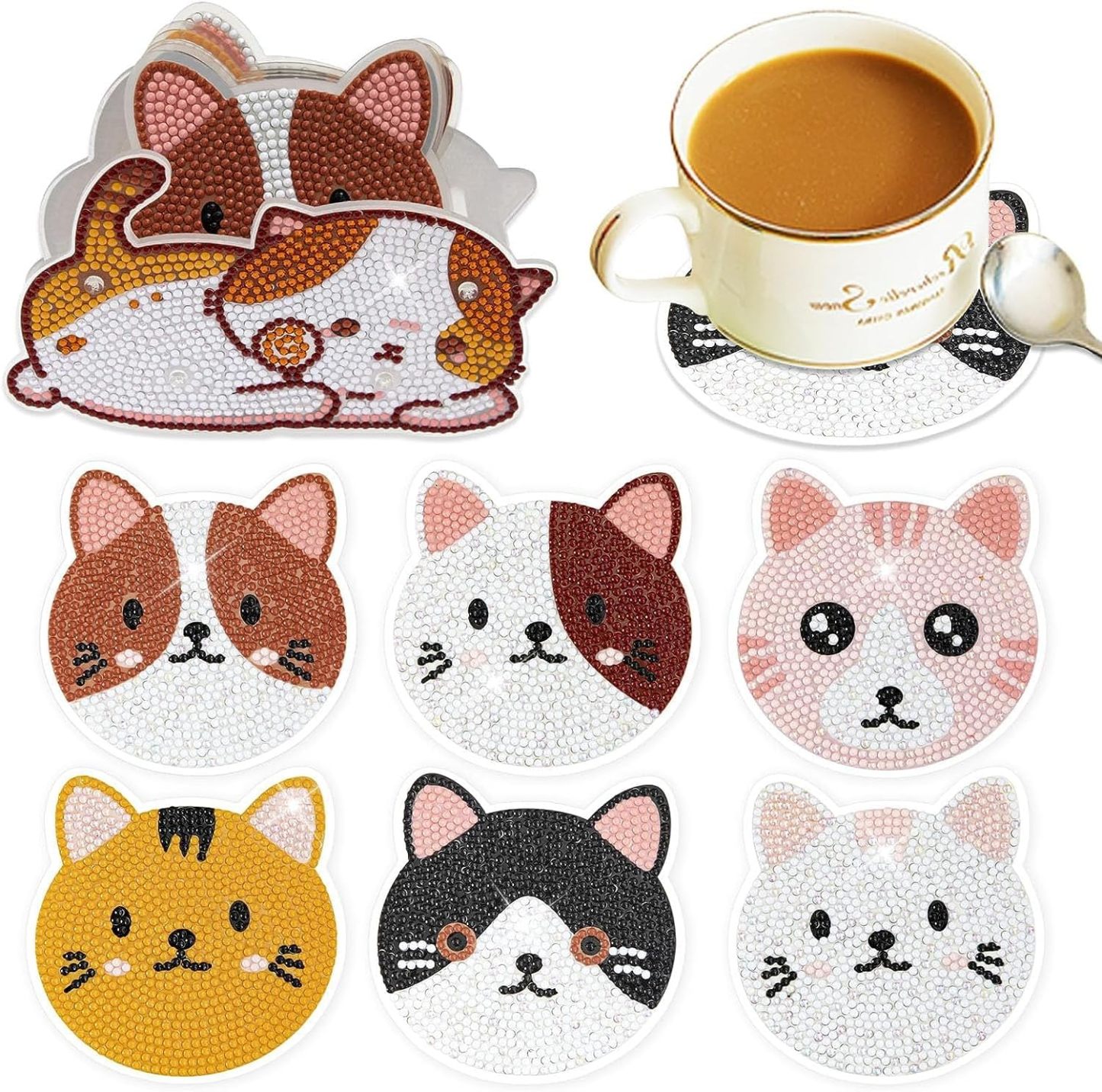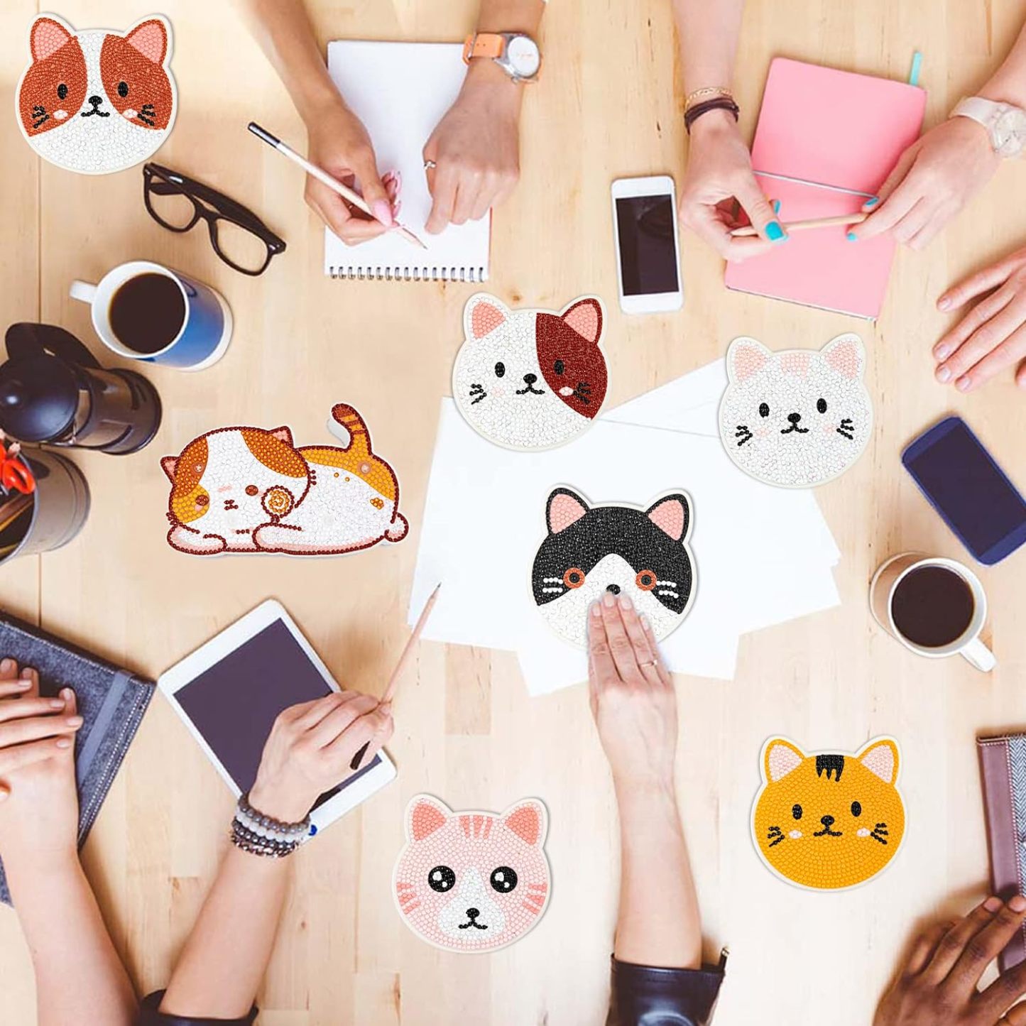 8 Pieces 5D Diamond Painting Coasters New Style Various Sticker Patterns DIY Leisure Toys Children's Gifts
