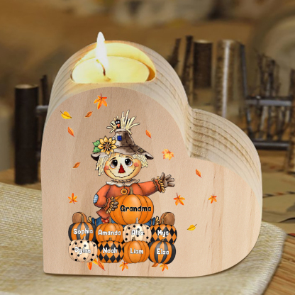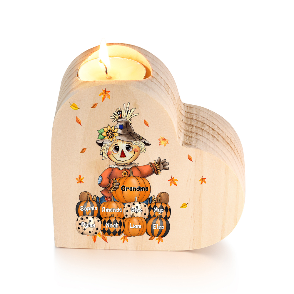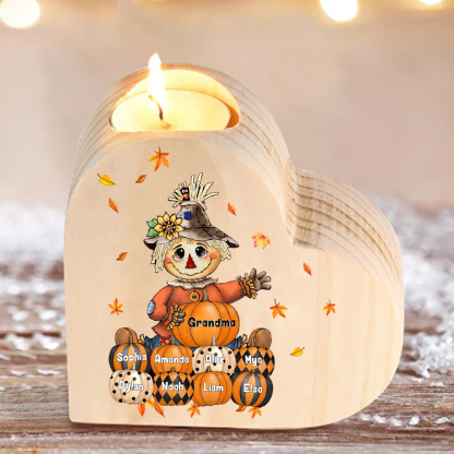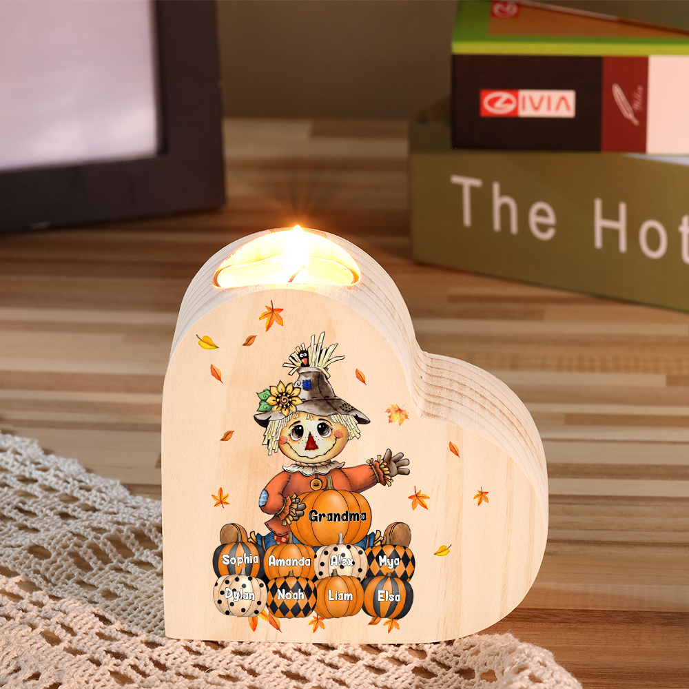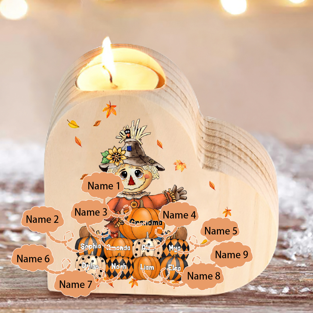 9 Names-Custom Halloween Wooden Candlestick-Personalized Names Pumpkin Heart Candle Holder Halloween Gift for Family