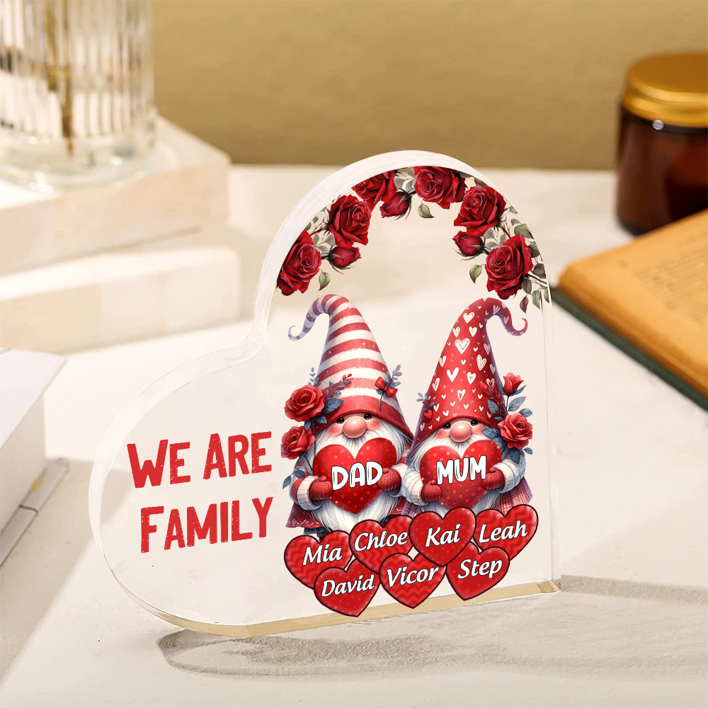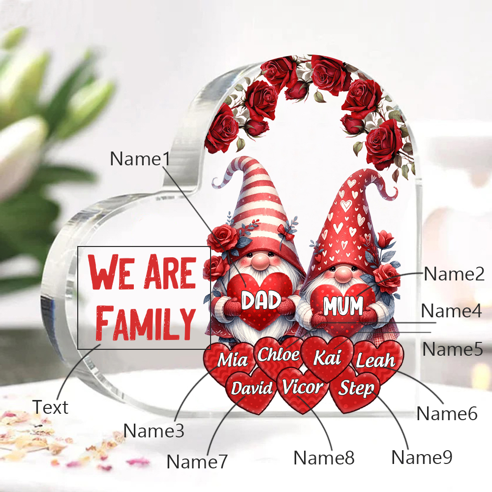 9 Names-Personalized Family Dwarf Acrylic Ornament-Custom Text Acrylic Family Heart Keepsake Desktop Ornament For Family