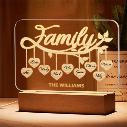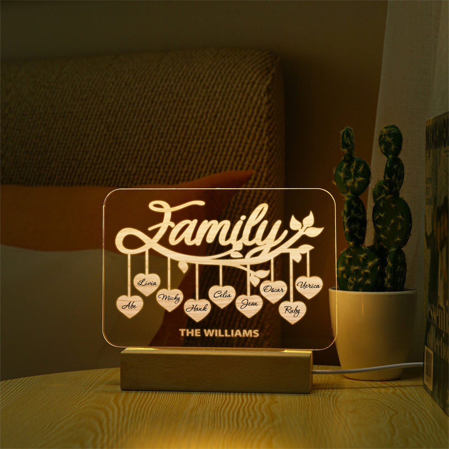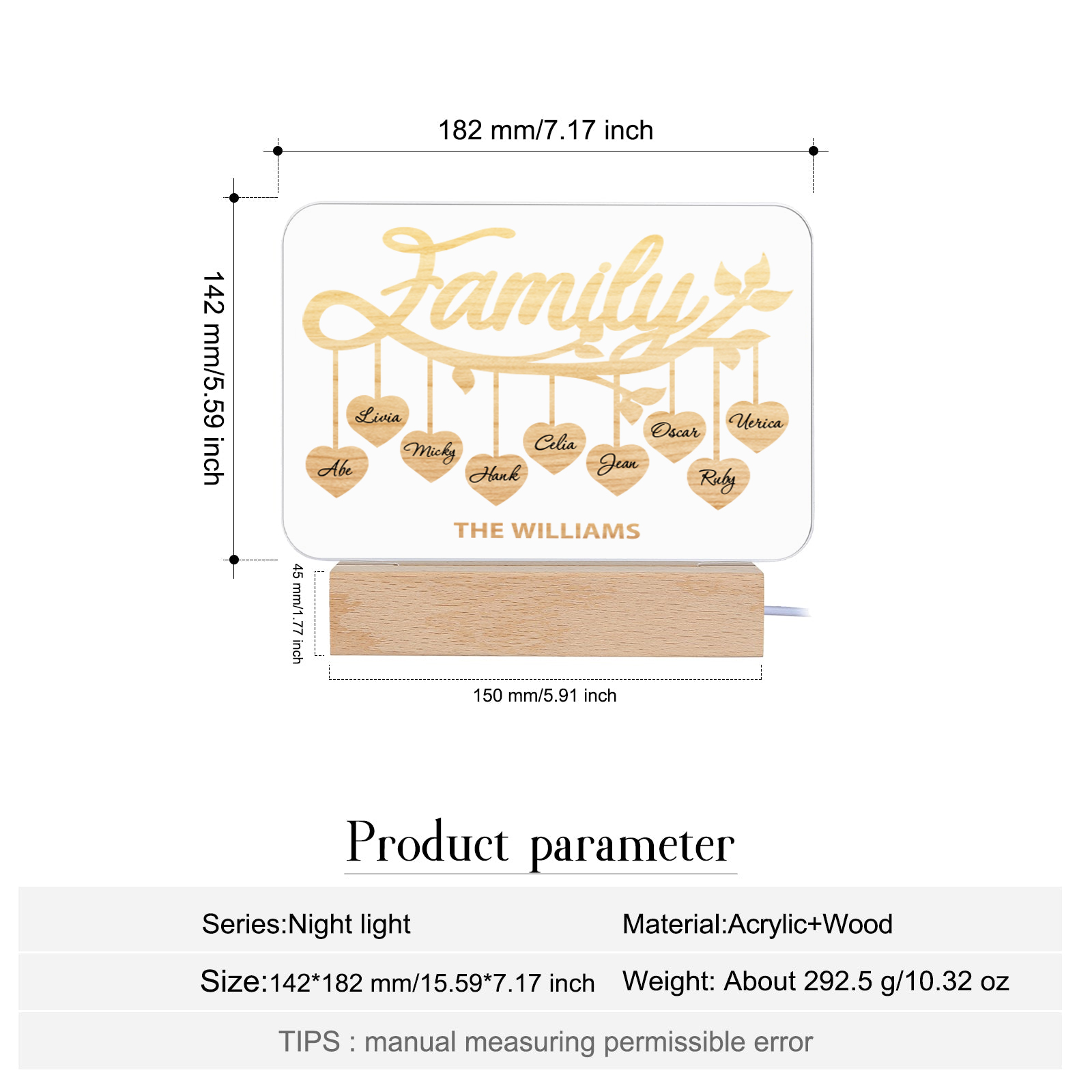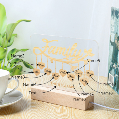9 Names-Personalized Family Night Light Custom Text LED Lamp Mother's Day Gift For Family