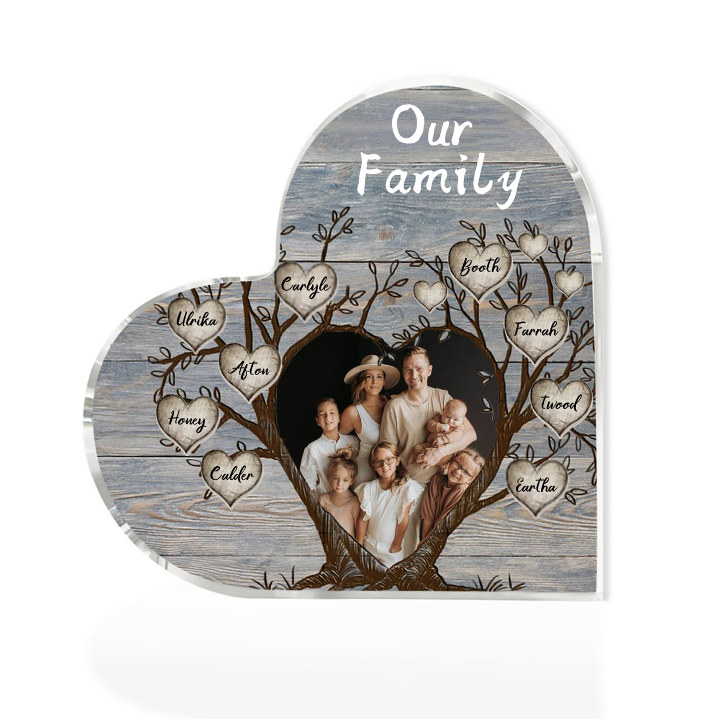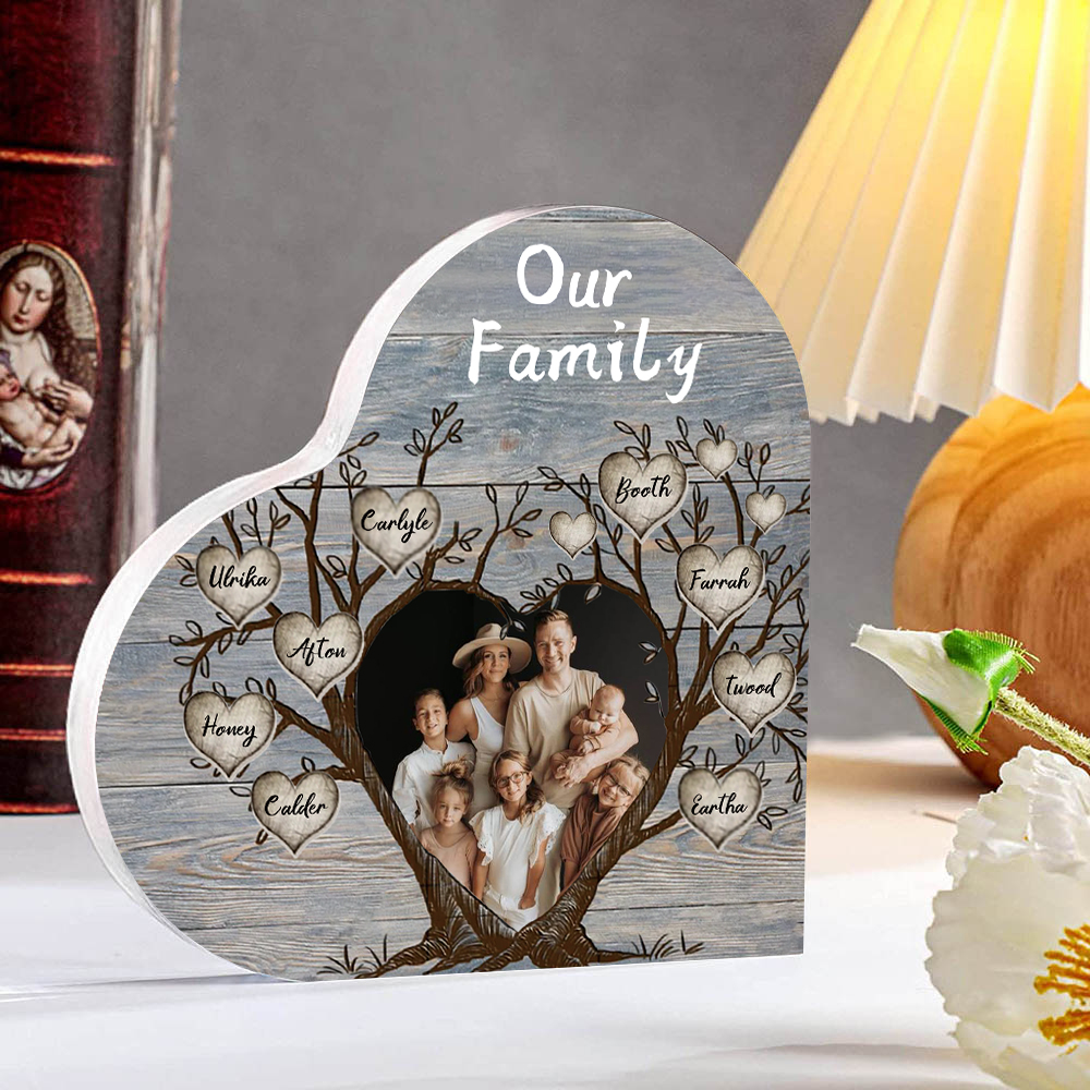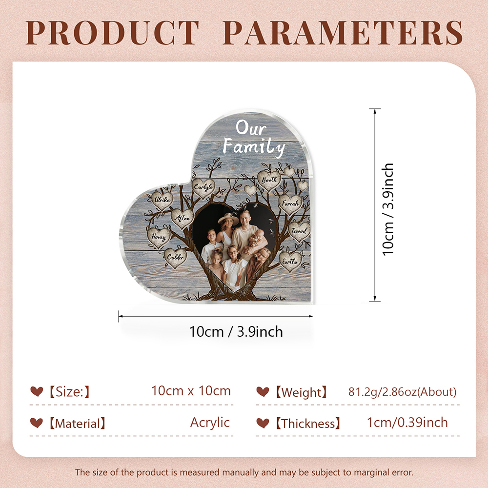 9 Names-Personalized Family Tree Acrylic Ornament-Custom Acrylic Family Heart Keepsake Desktop Ornament for family-Mum/Nan/Nana/Grandma