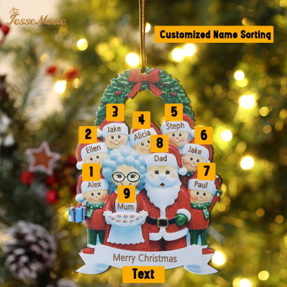 9 Names-Personalized Family Wooden Christmas Xmas Tree Decoration Ornament-Custom 9 Names Hanging Ornament Gifts For Family