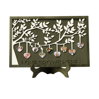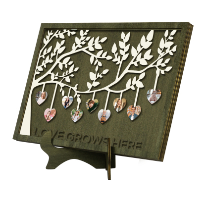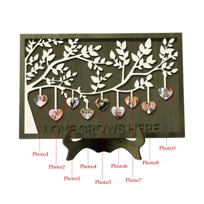 9 Photos-Personalized Family Tree Decoration Wooden Ornaments Love Grows Here Concave And Convex Frame Custom Photos For Family