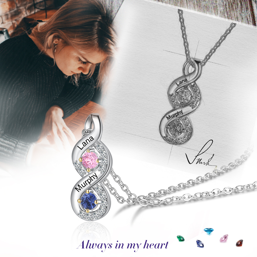 Personalized DNA Necklace With 2 Birthstones Engraved Names Gift For Women