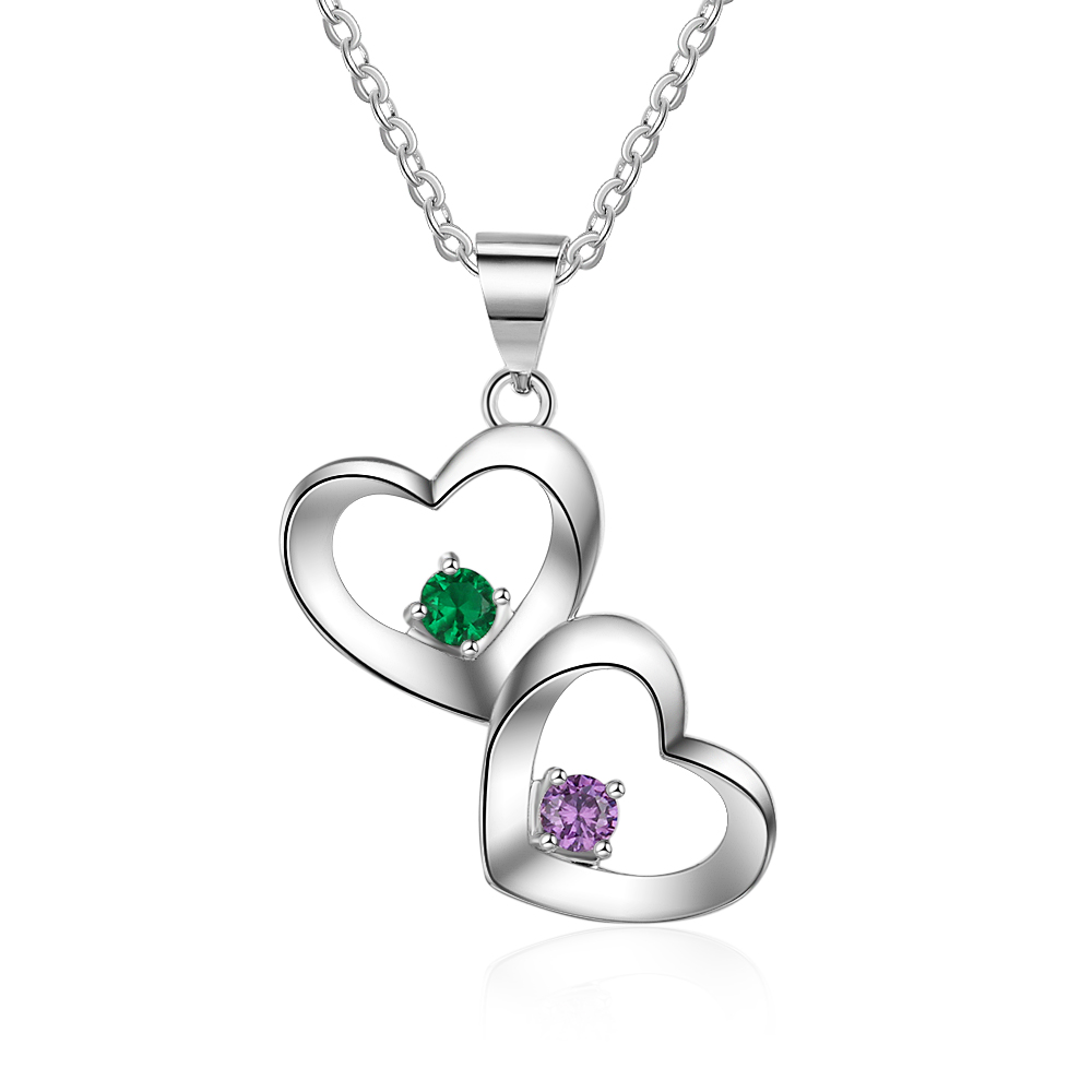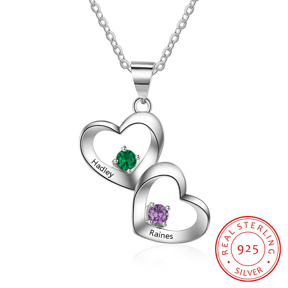 Celebrate the love of a lifetime with our 2 Hearts Forever One Necklace – 925 Sterling Silver. Wonderful for a 2 children’s names as well, this exquisite piece features 2 inscriptions, along with a duo of birthstones for just the right touch of sparkle. However you style it, it’s sure to be a favorite! This beautiful birthstone necklace is made with 925 Sterling Silver, and comes complete with a chain to match