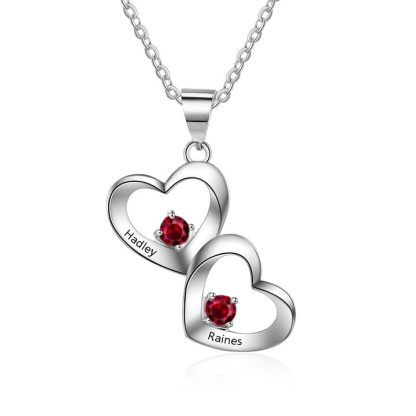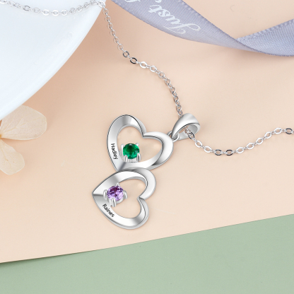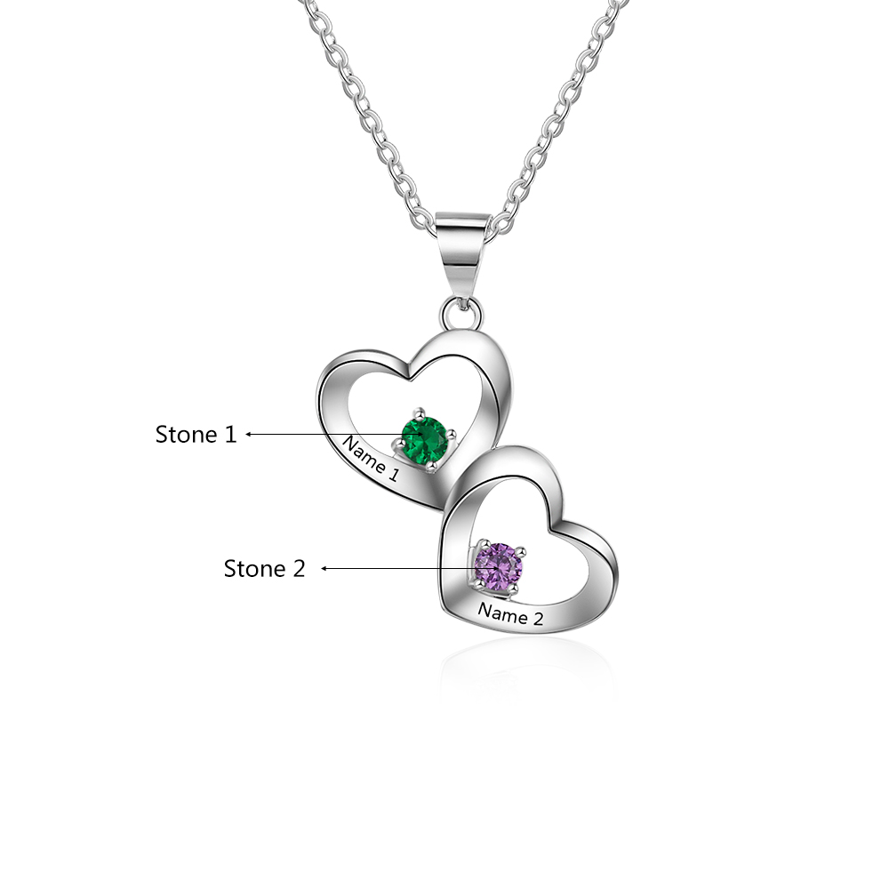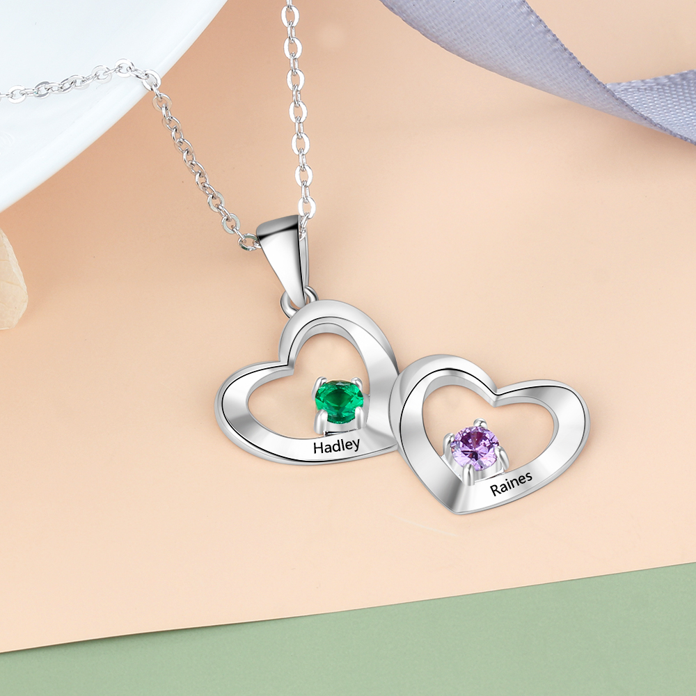 Personalized Heart Necklace With 2 Birthstones Engraved Names Necklace Gift For Women