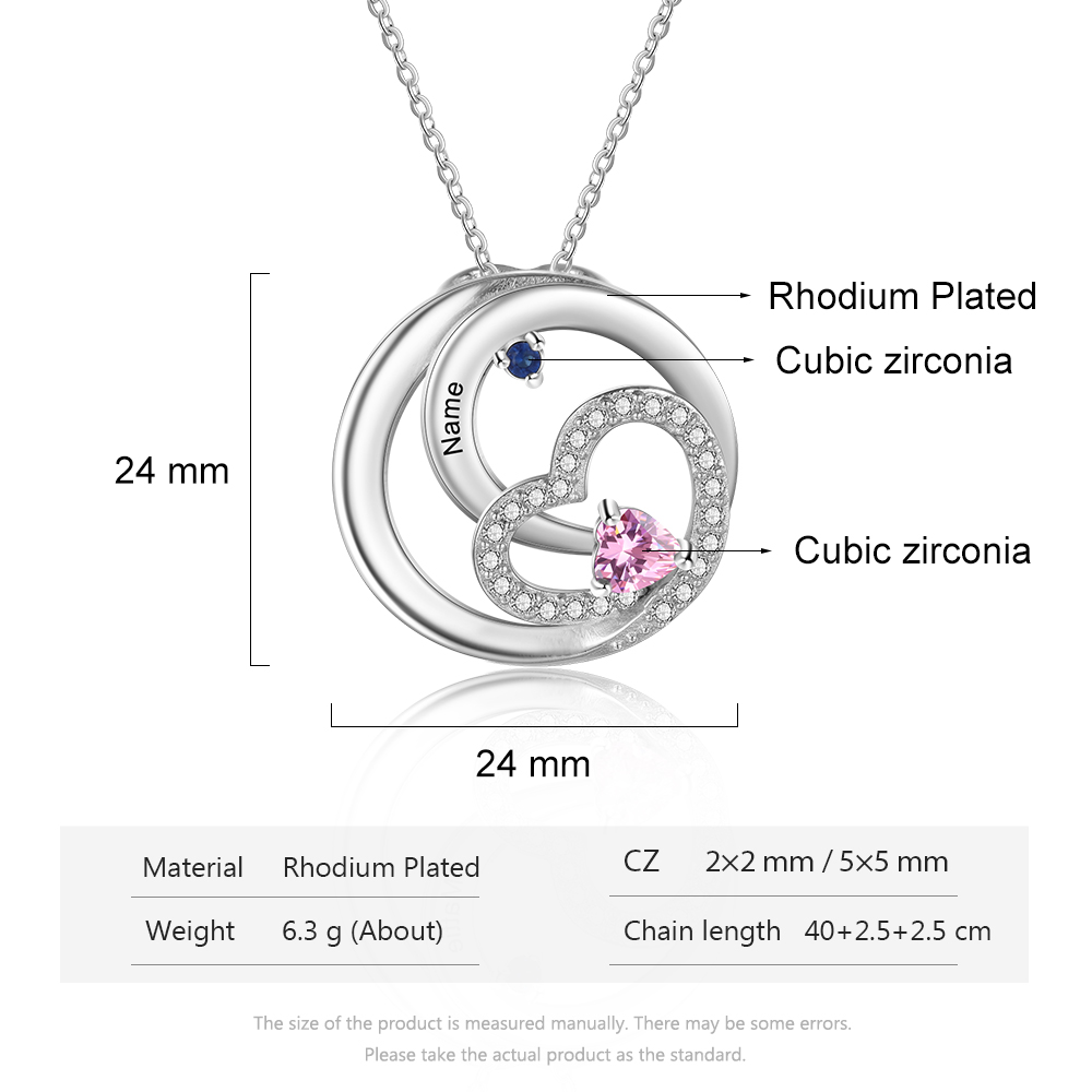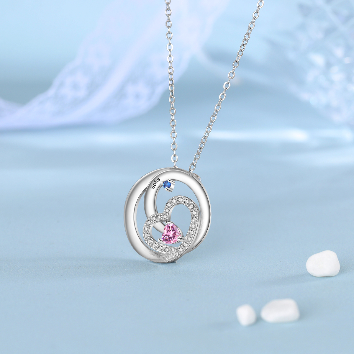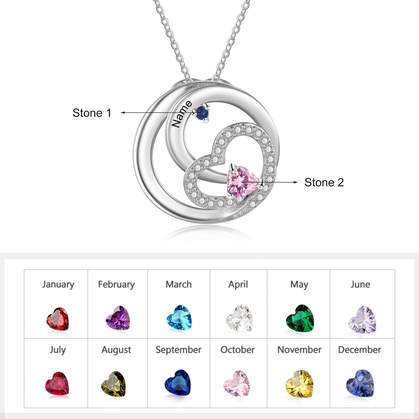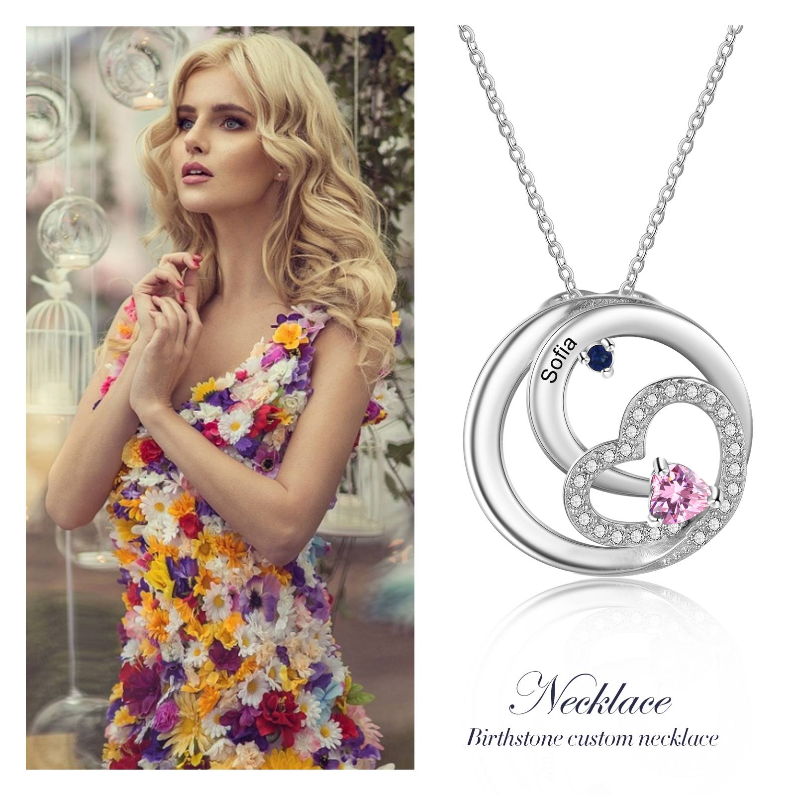 Personalized Necklace With 2 Heart Birthstones Engraved Names Gift For Women