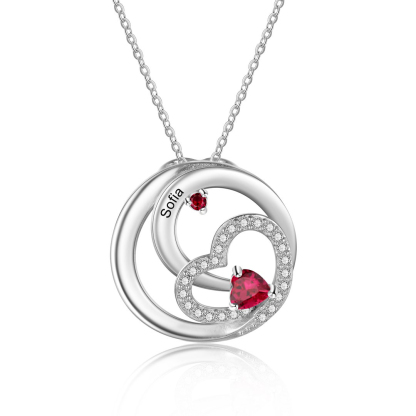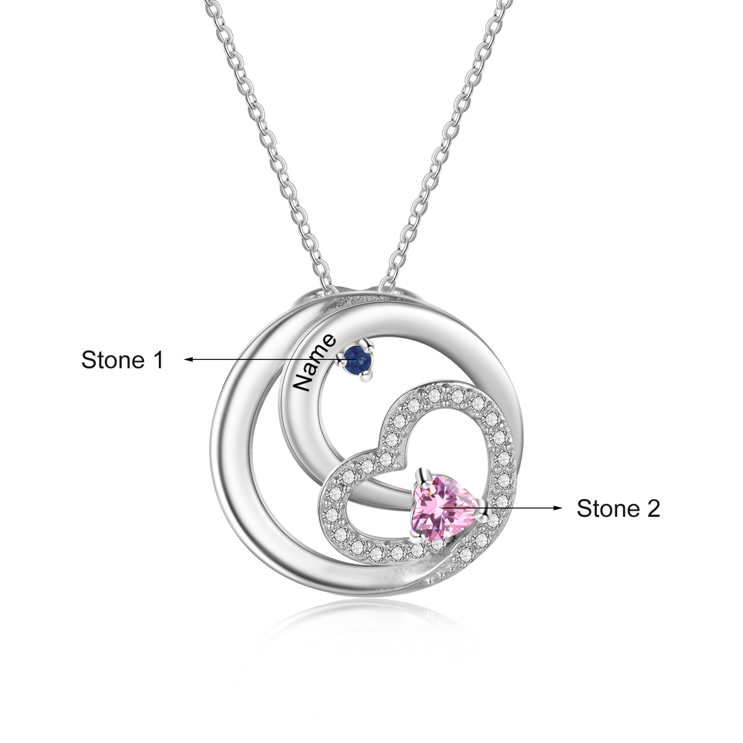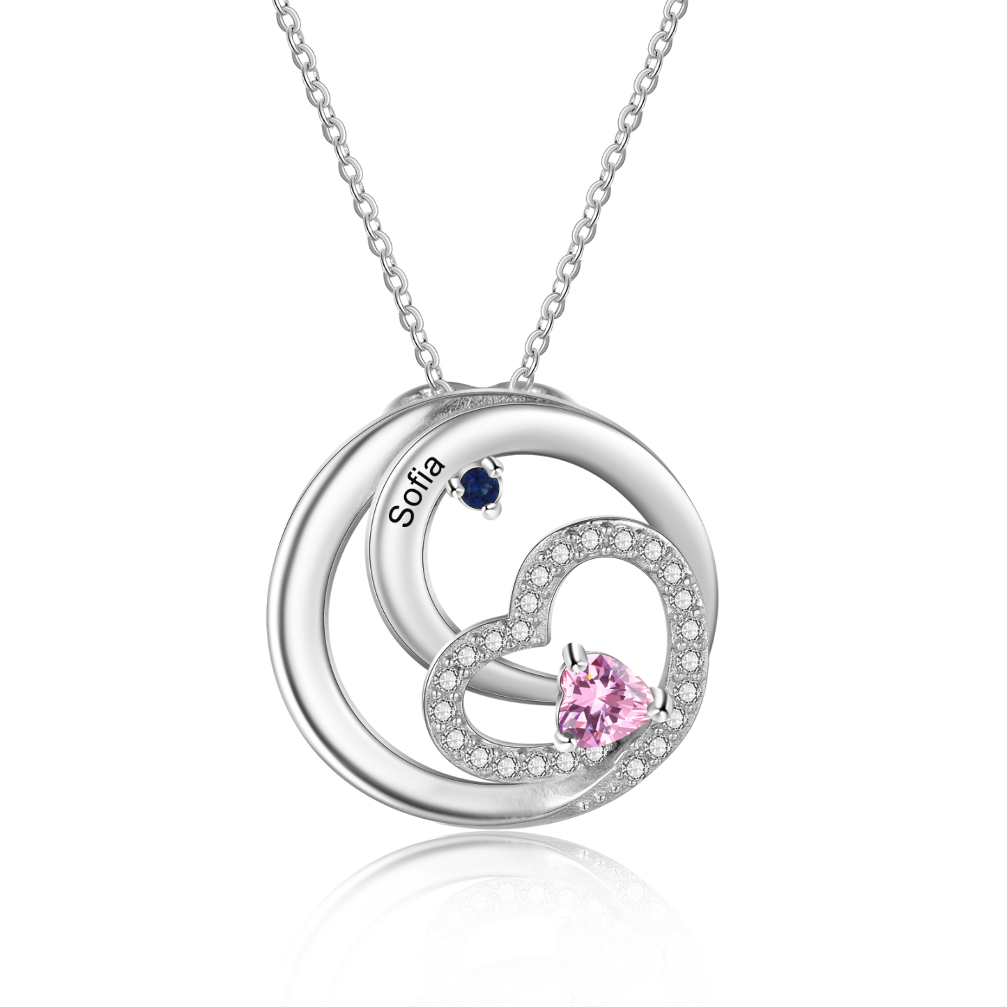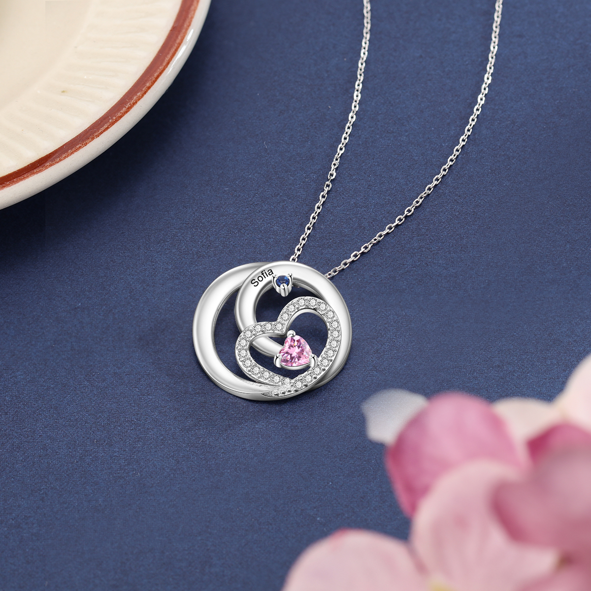 Personalized Necklace With 2 Heart Birthstones Engraved Names Gift For Women
