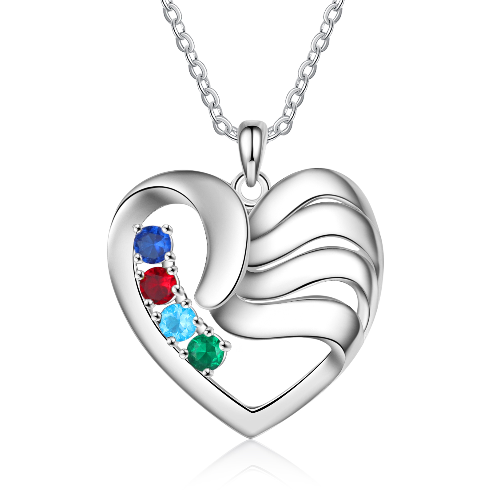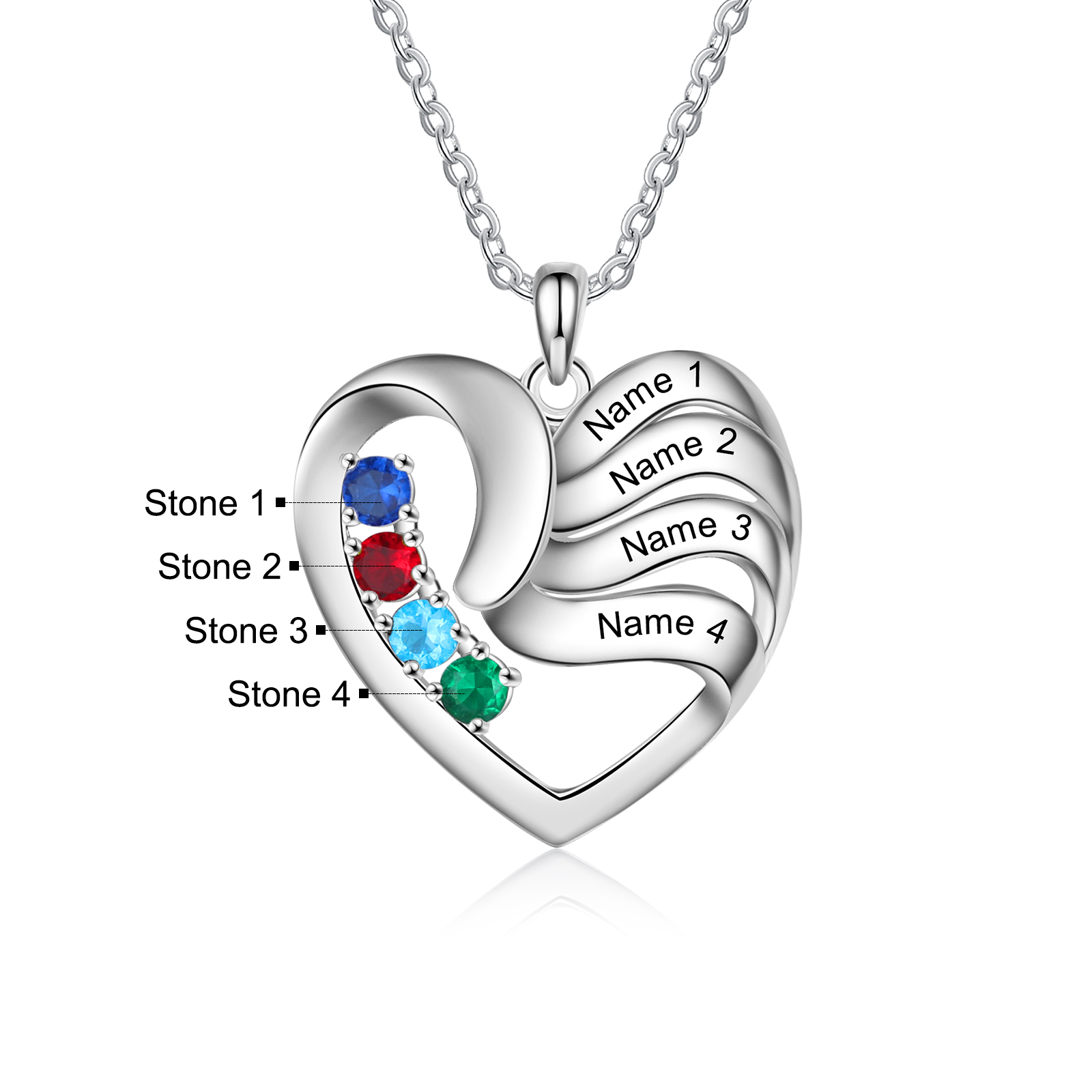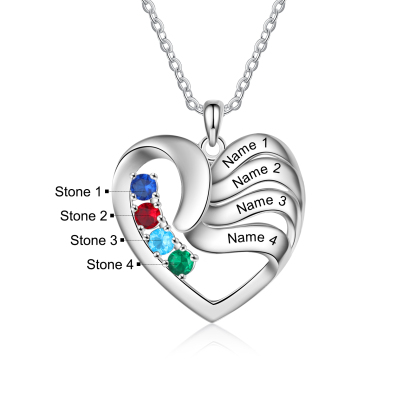 Personalized Heart Necklace With 4 Birthstones Engraved Names Gift For Women