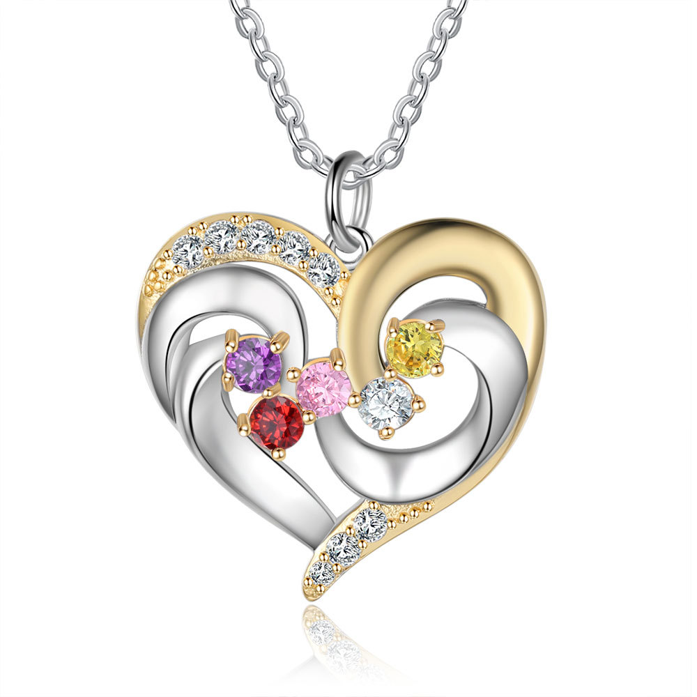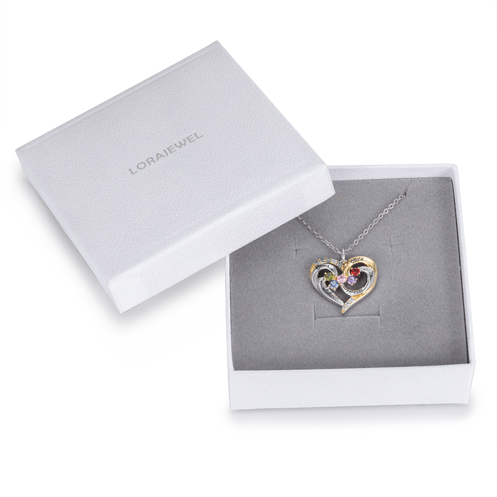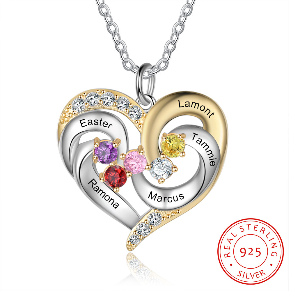 Personalized Heart Necklace With 5 Birthstones Engraved Names Gift For Women