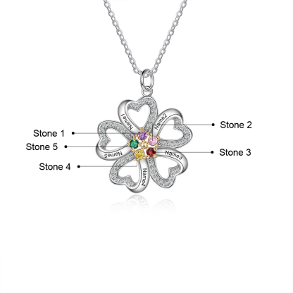 Personalized Heart Necklace With 5 Birthstones Engraved Names Gift For Women