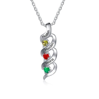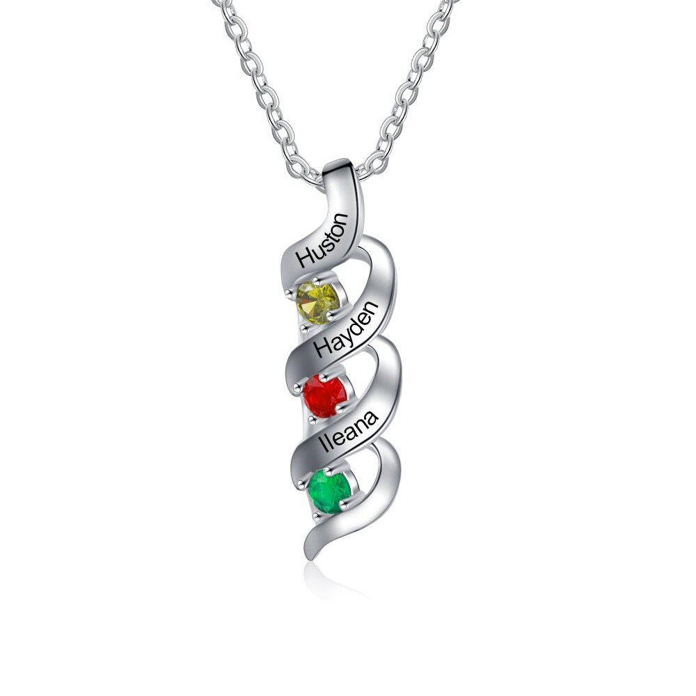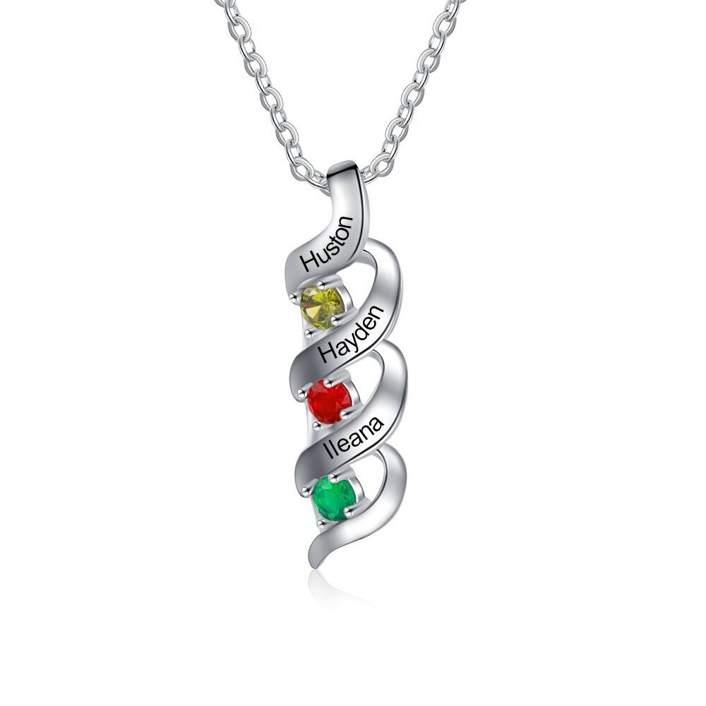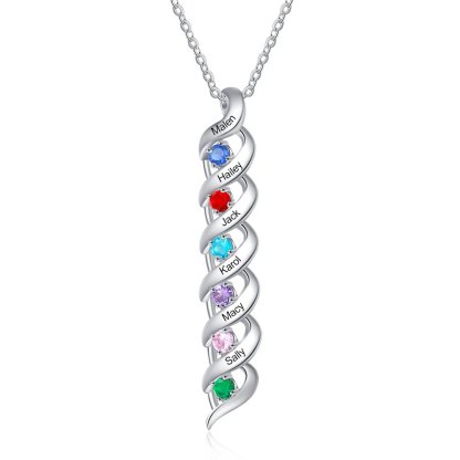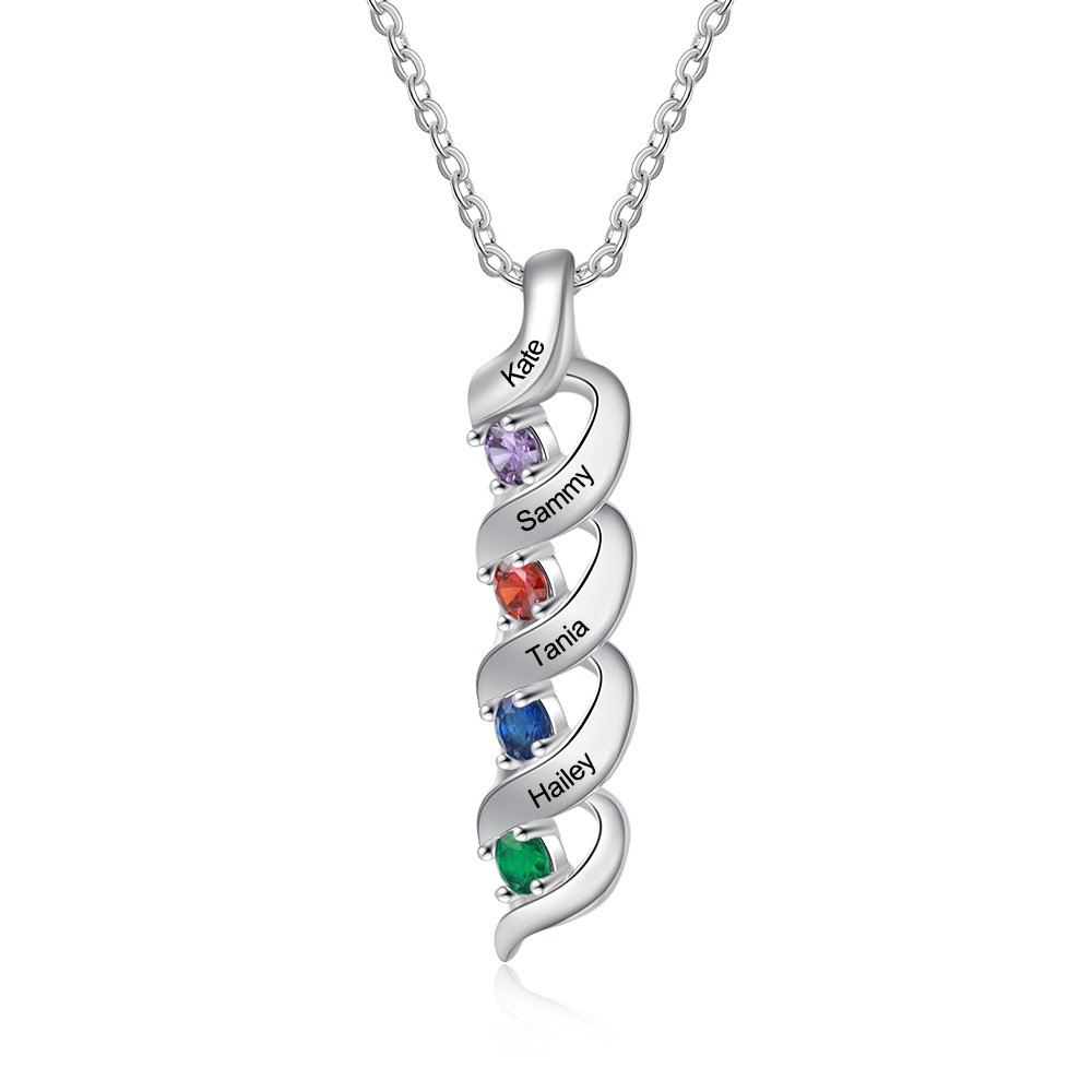 S925 Family Necklace Customized Necklace Cascading Pendant with 2-7 Birthstones Engraving Names Gifts for Her