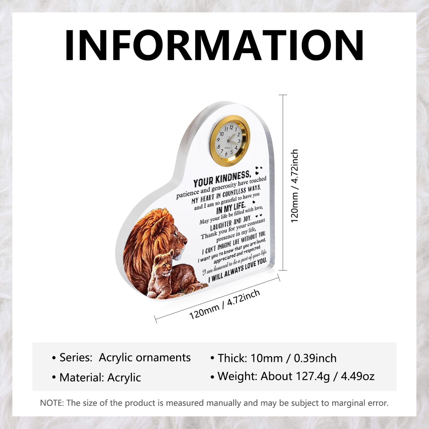 Acrylic Heart Clock Keepsake Heart Sign - I am honored to be a part of your life