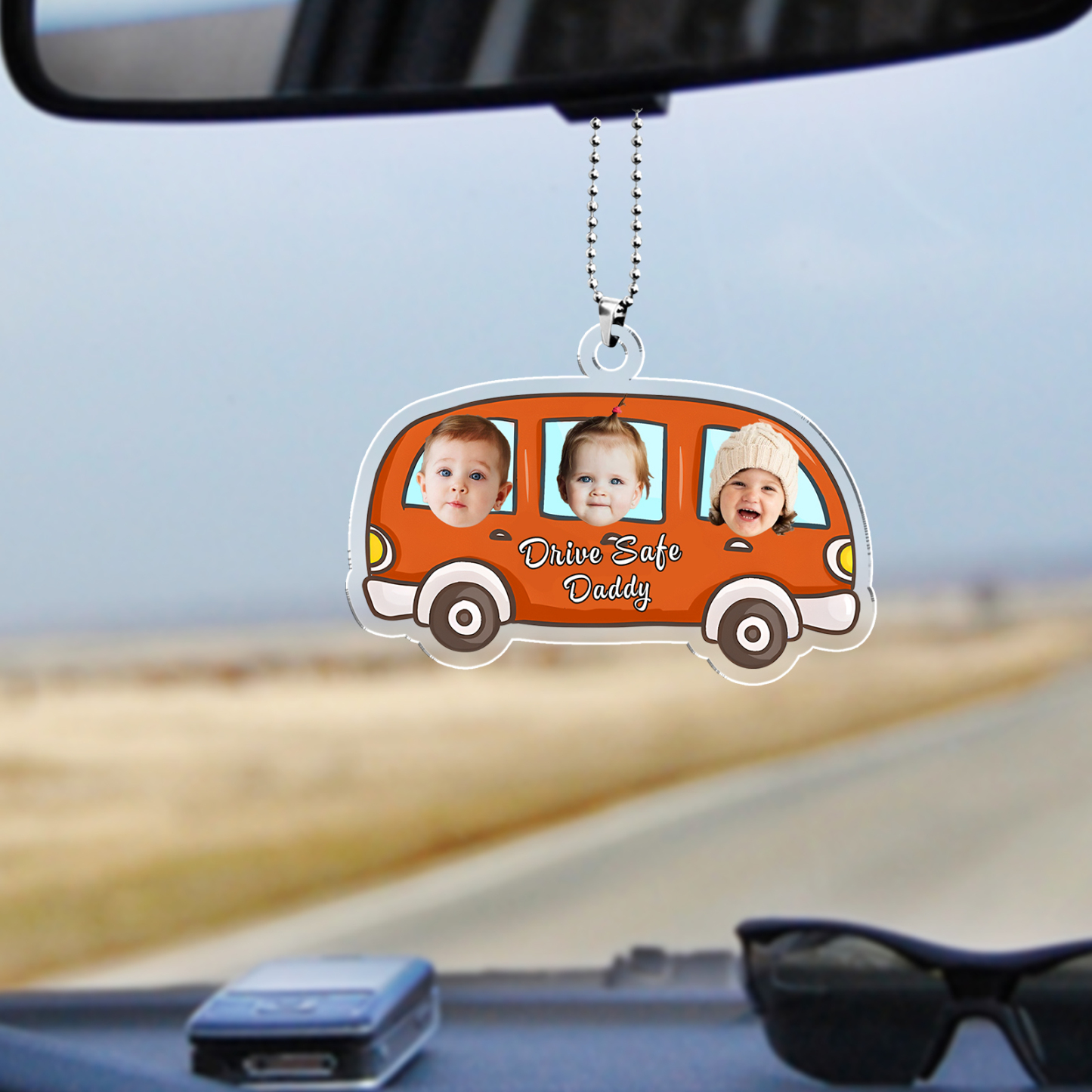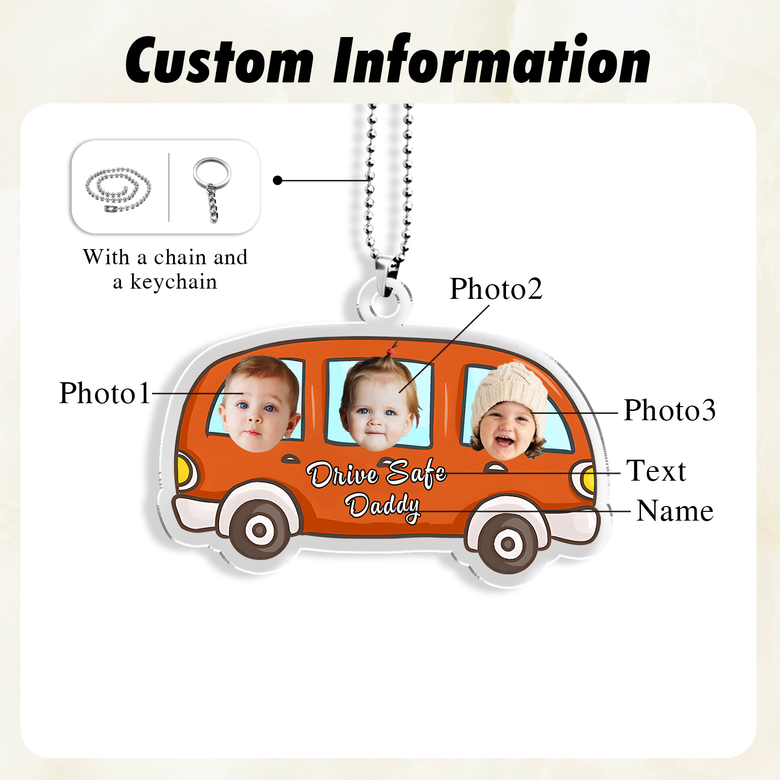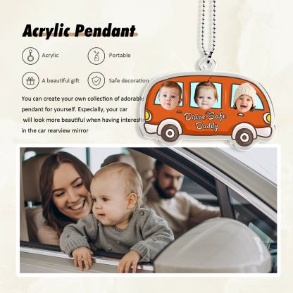 Acrylic Keychain/Decoration Personalized 3 Photos, Name And Text Driving Pattern Pendant For Dad