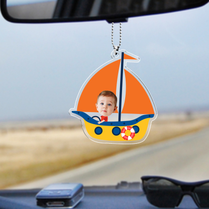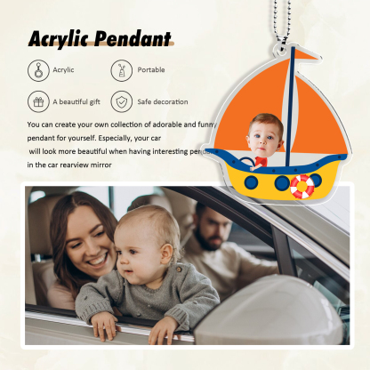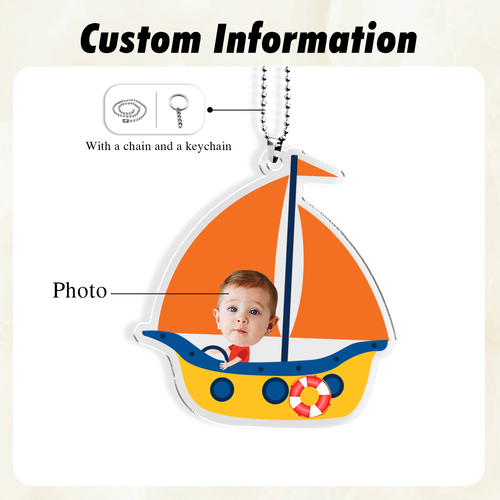 Acrylic Keychain/Decoration Personalized Photo Children Driving Yacht Pattern Pendant, Suitable For Dad