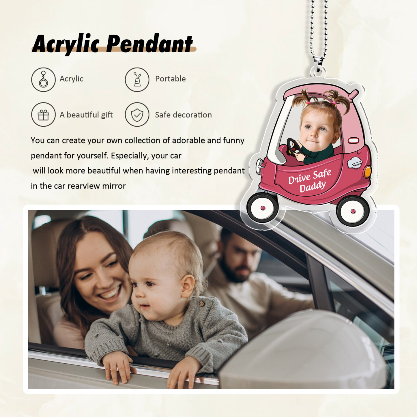 Acrylic Keychain/Decoration Personalized Photo, Name And Text Driving Pattern Pendant For Dad