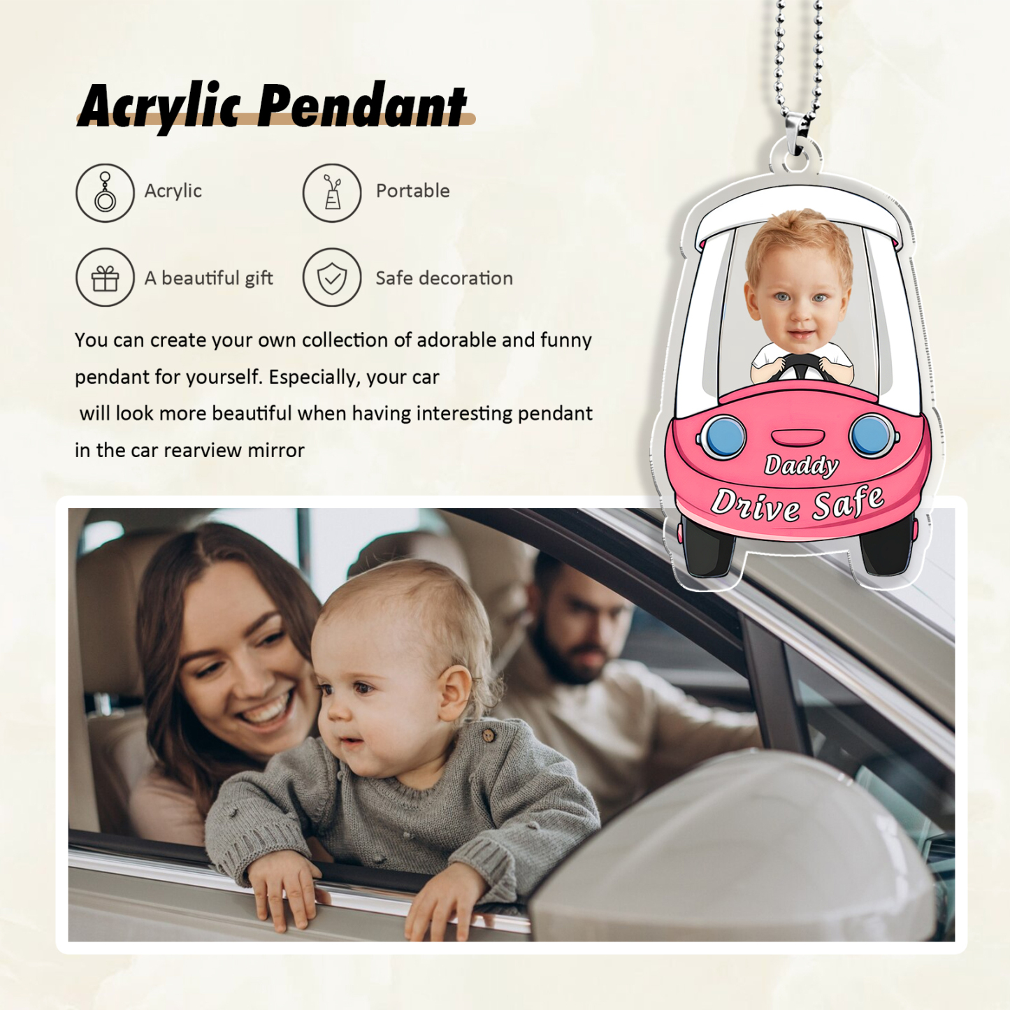 Acrylic Keychain/Decoration Personalized Photo, Name And Text Driving Pattern Pendant For Dad