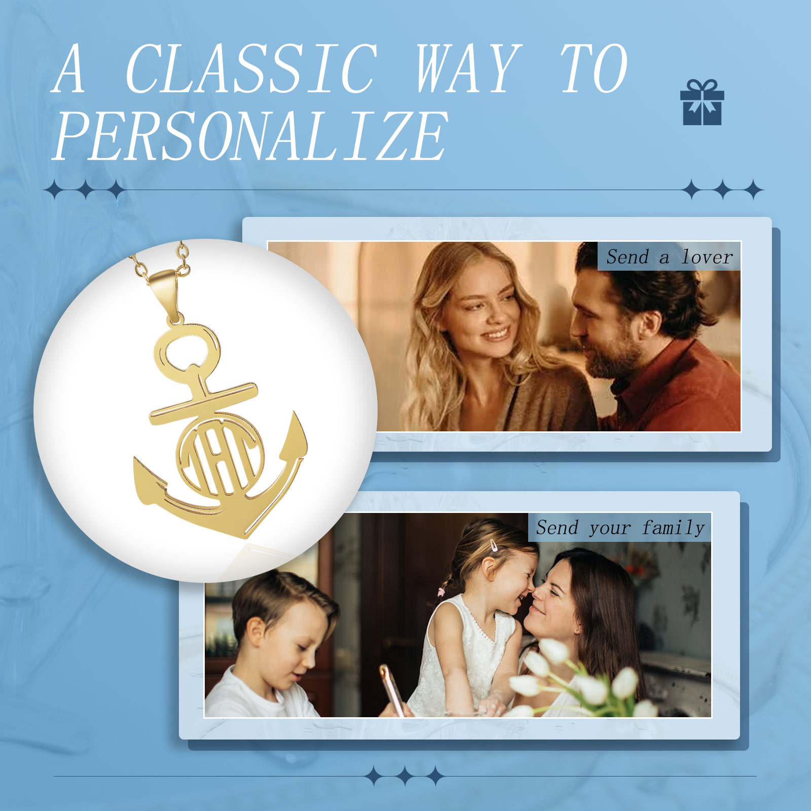 Anchor Letter Necklace Customized Necklaces Romantic Gift For Her