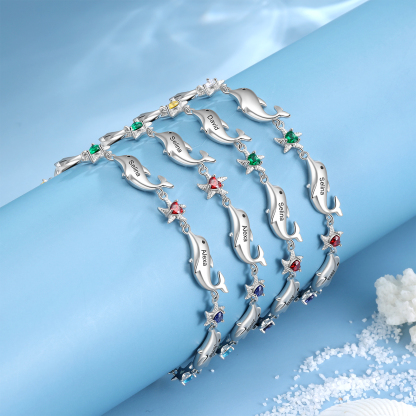 Animal Bracelet Personalized Dolphin Bracelet With 4 Birthstones Engraved Names Starfish Charm Gifts For Her